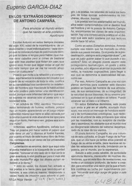 En los "Extraños dominios" de Antonio Campaña [artículo] Eugenio García-Díaz
