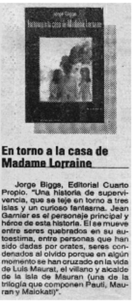 Autores chilenos - Biggs Henning, Jorge - En torno a la casa de Madame Lorraine