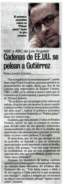 Víctor Gutiérrez : "creo que Michael Jackson no recibirá pena de cárcel" [artículo] Paulina Toro.