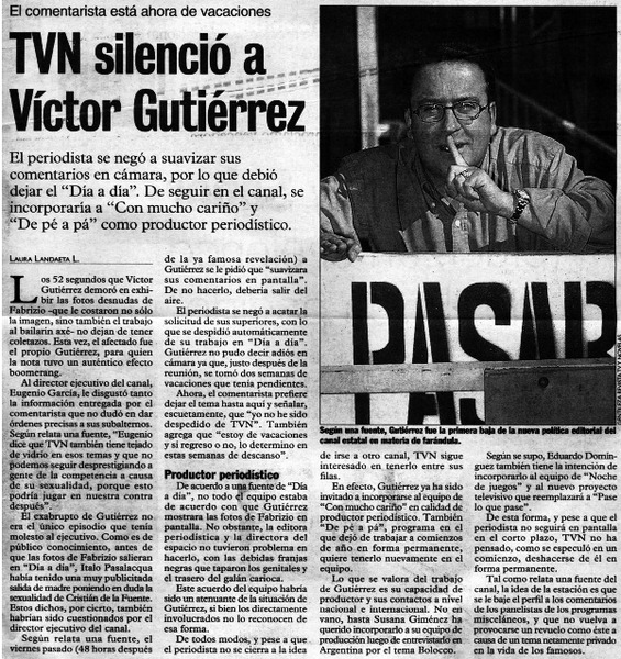 TVN silenció a Víctor Gutiérrez [artículo] Laura Landaeta L.