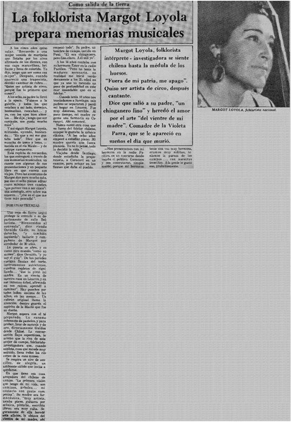 Margot Loyola, "Yo he sido una especie de milagro en mi país" [artículo] Gonzalo Núñez.