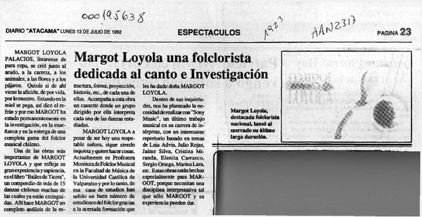 Noticias sobre Margot Loyola [artículo] Sucre Valenzuela Zura