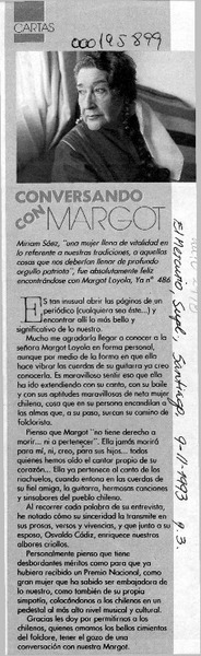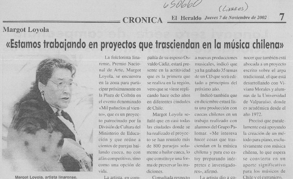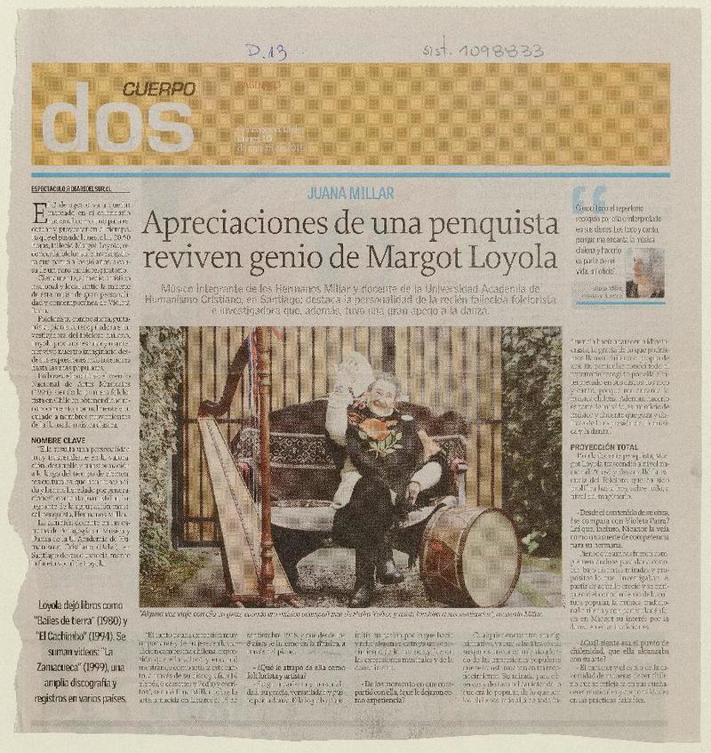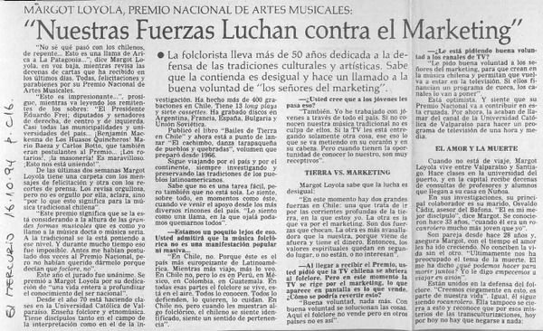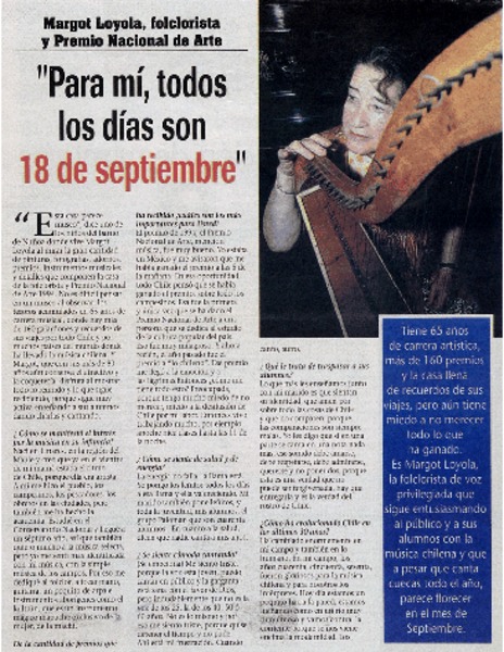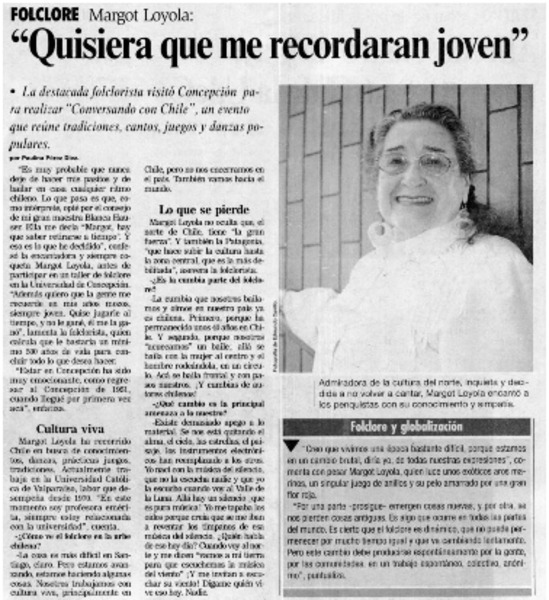 Apreciaciones de una penquista reviven genio de Margot Loyola [entrevista] : [artículo]
