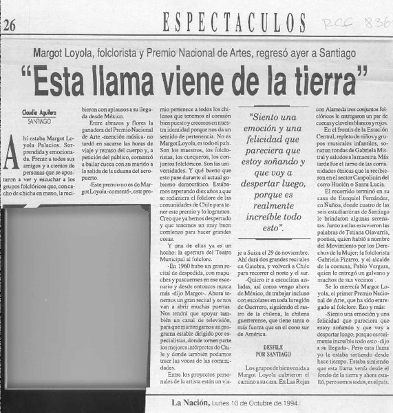 "Esta llama viene de la tierra" [artículo] Claudia Aguilera.
