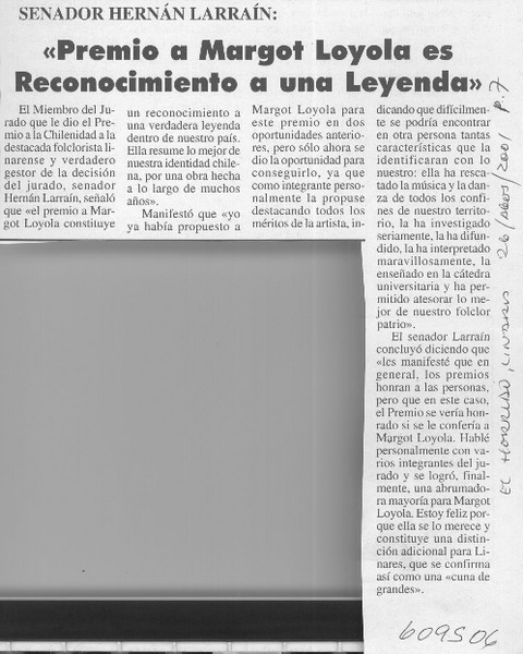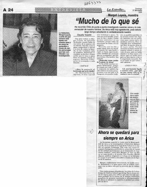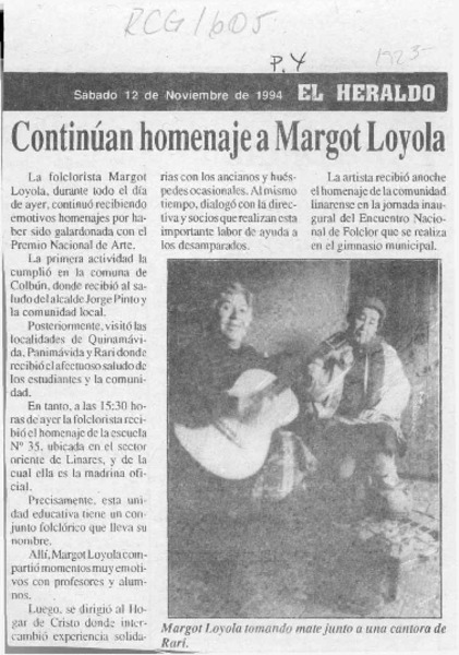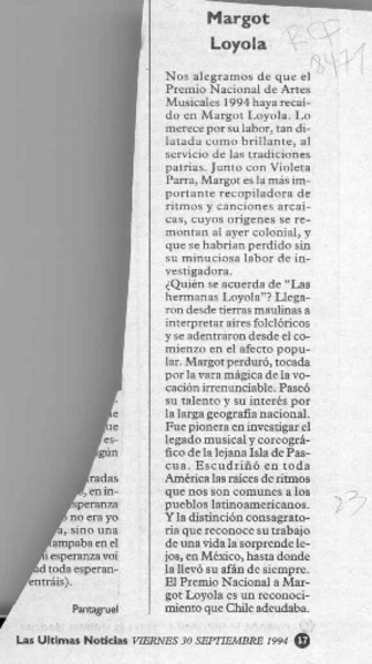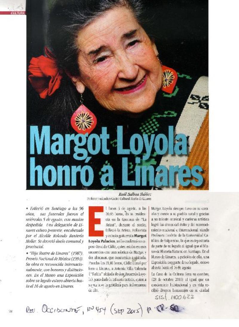 Distinguen a Margot Loyola [artículo]