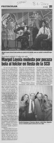 Margot Loyola molesta por pocaza bola al folclor en fiesta de la SCD [artículo]