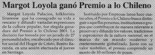 Margot Loyola y el "Premio a lo chileno 2001". [artículo]