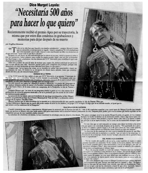 "Necesitaría 500 años para hacer lo que quiero" [artículo] Angélica Meneses.