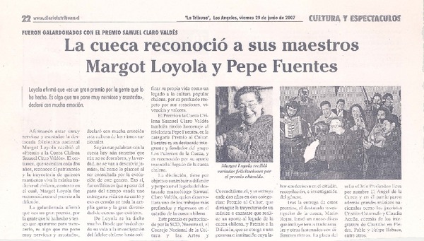 "Premio a Margot Loyola es reconocimiento a una leyenda" [artículo]