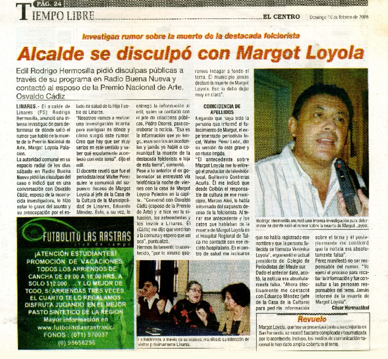 Alcalde se disculpó con Margot Loyola [artículo]César Hormazabal.