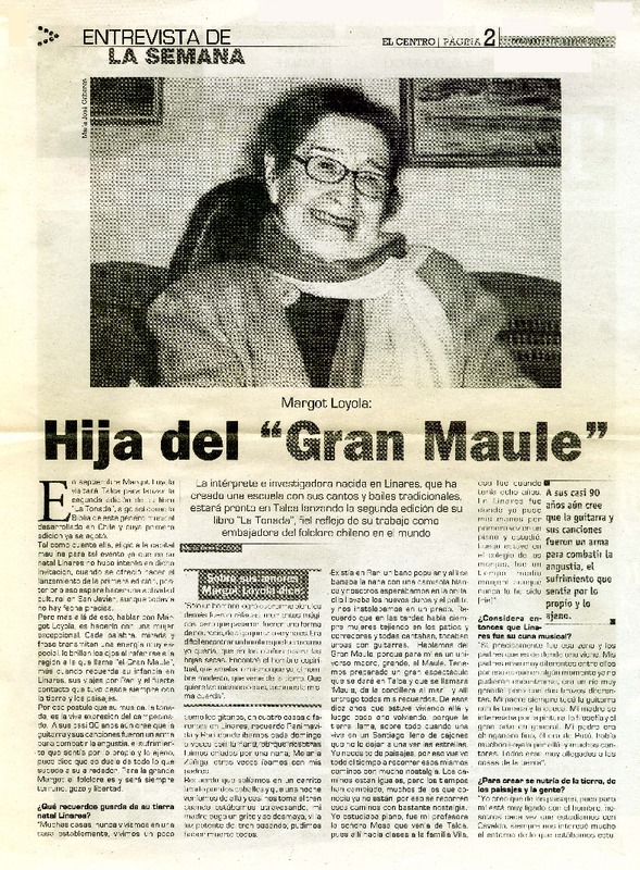 La tonada de Margot Loyola (entrevista) [artículo] Ana Muga Sáez.