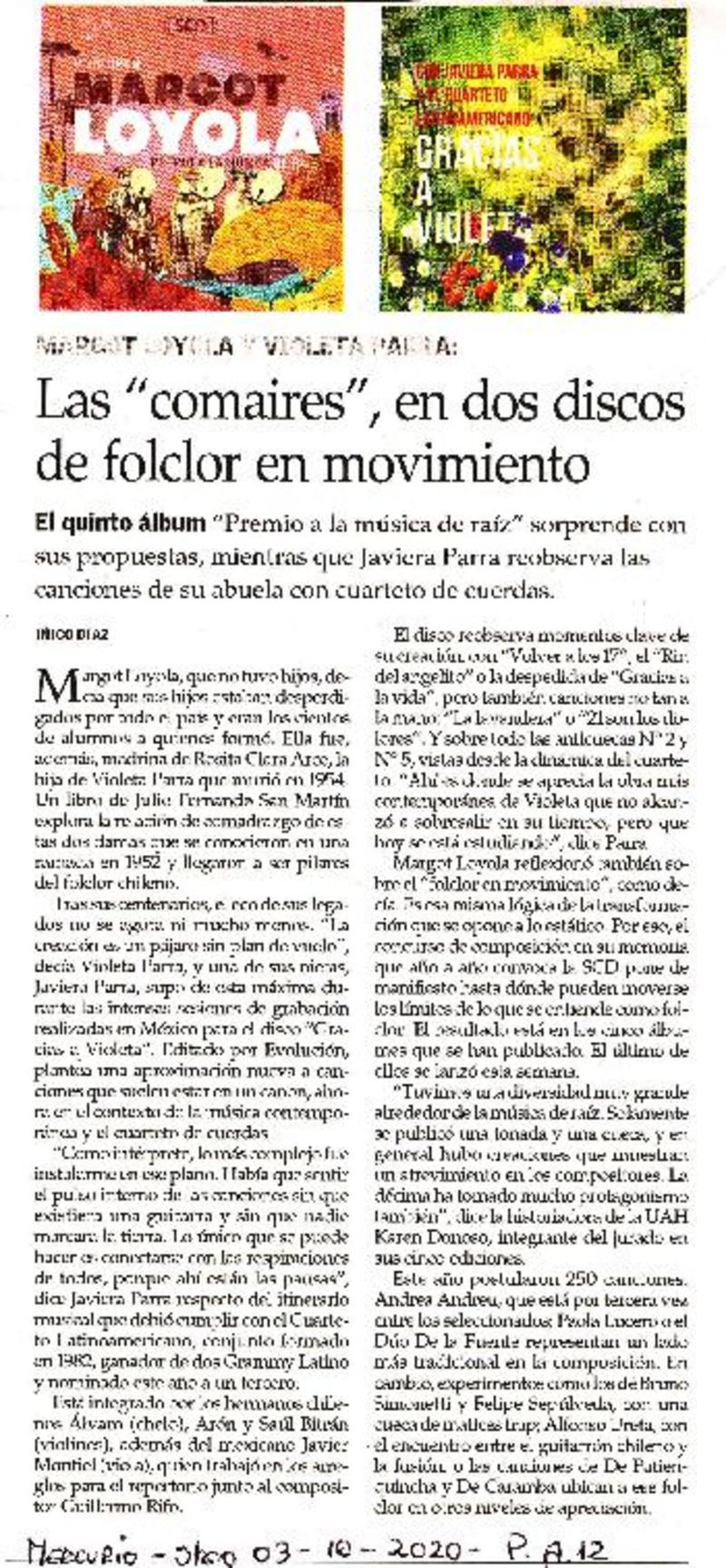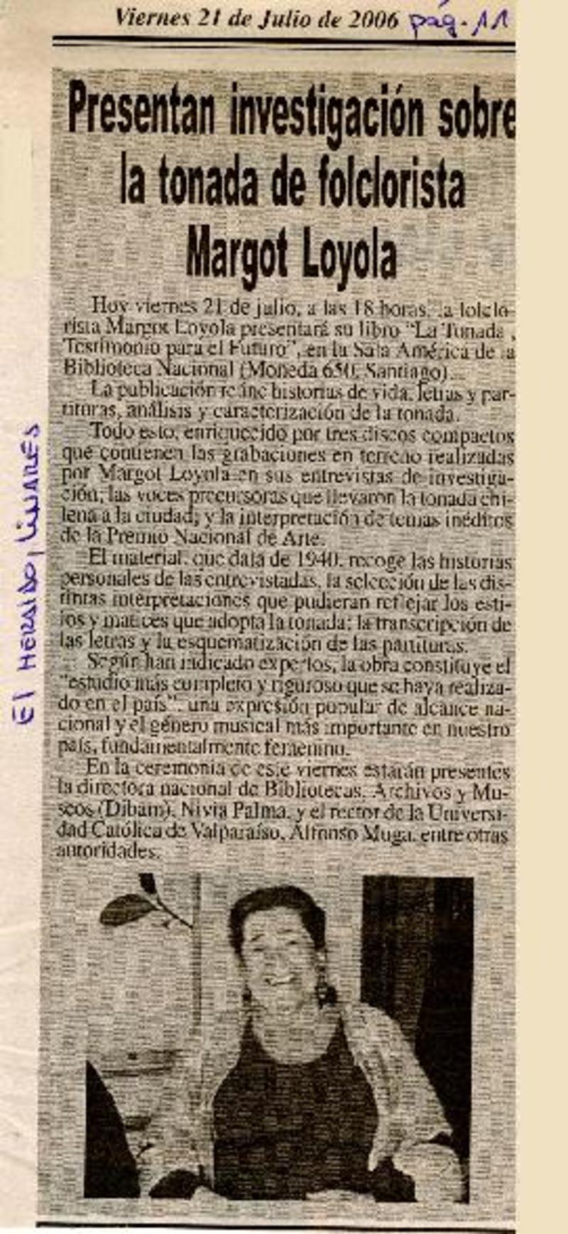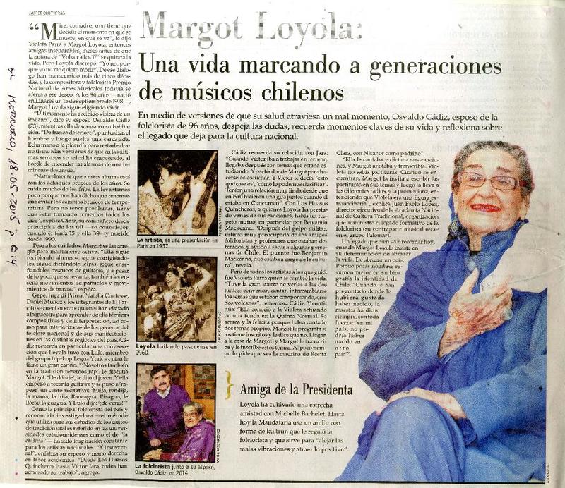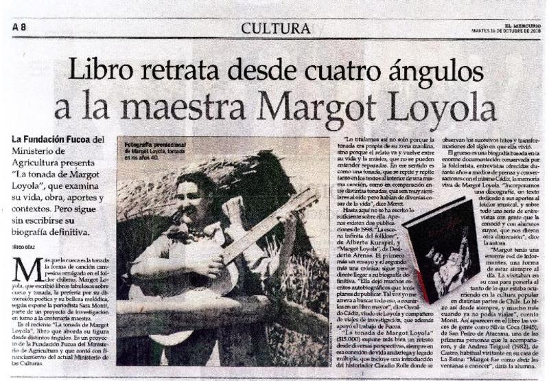 Libro retrata desde cuatro ángulos a la maestra Margot Loyola [artículo] Iñigo Díaz.