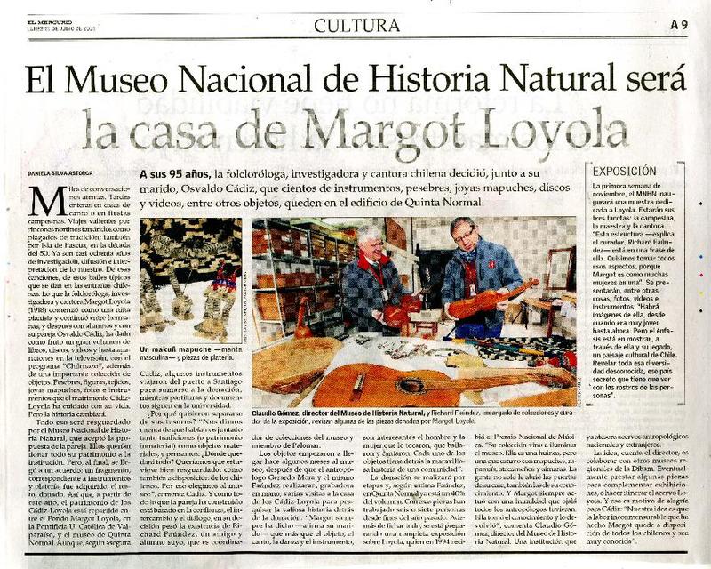 El Museo Nacional de Historia Natural será la casa de Margot Loyola [artículo] Daniela Silva Astorga