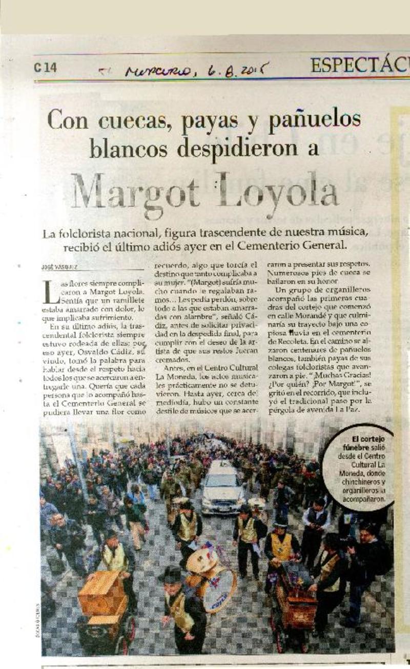 Con cuecas, payas y pañuelos blancos despidieron a Margot Loyola [artículo] José Vásquez.