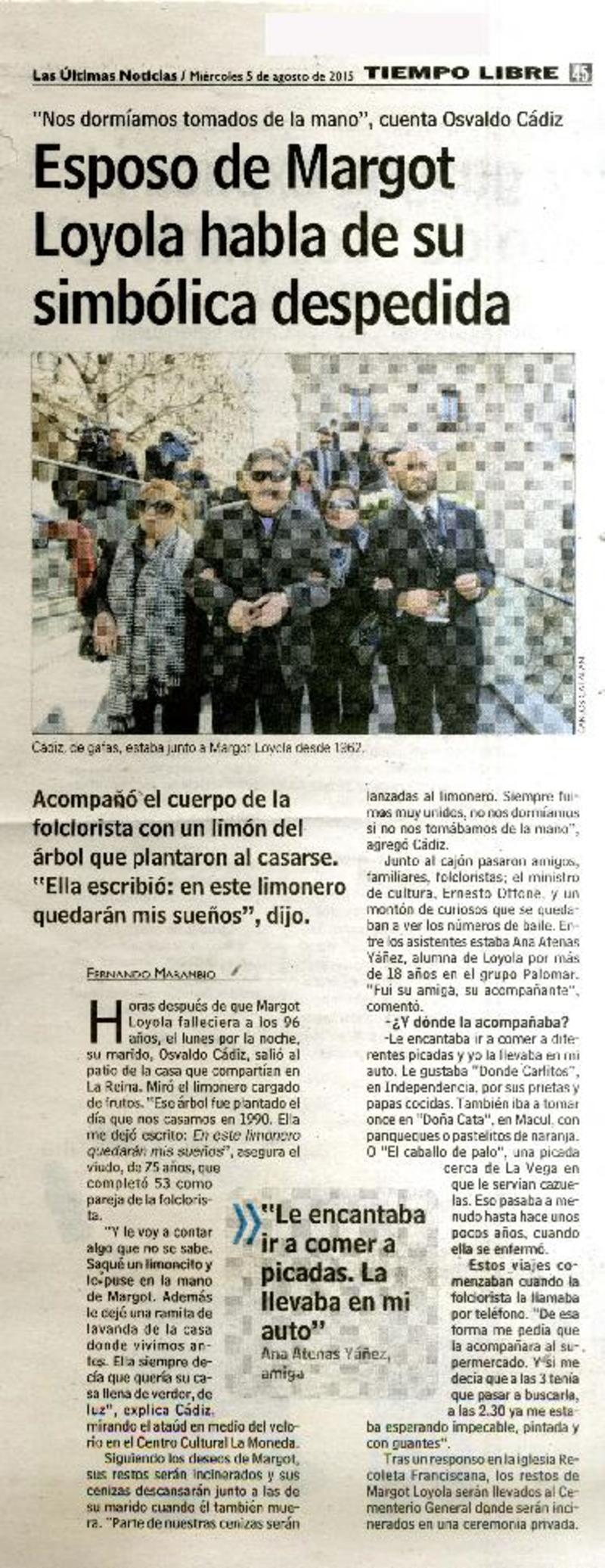 Esposo de Margot Loyola habla de su simbólica despedida [artículo] Fernando Marambio.