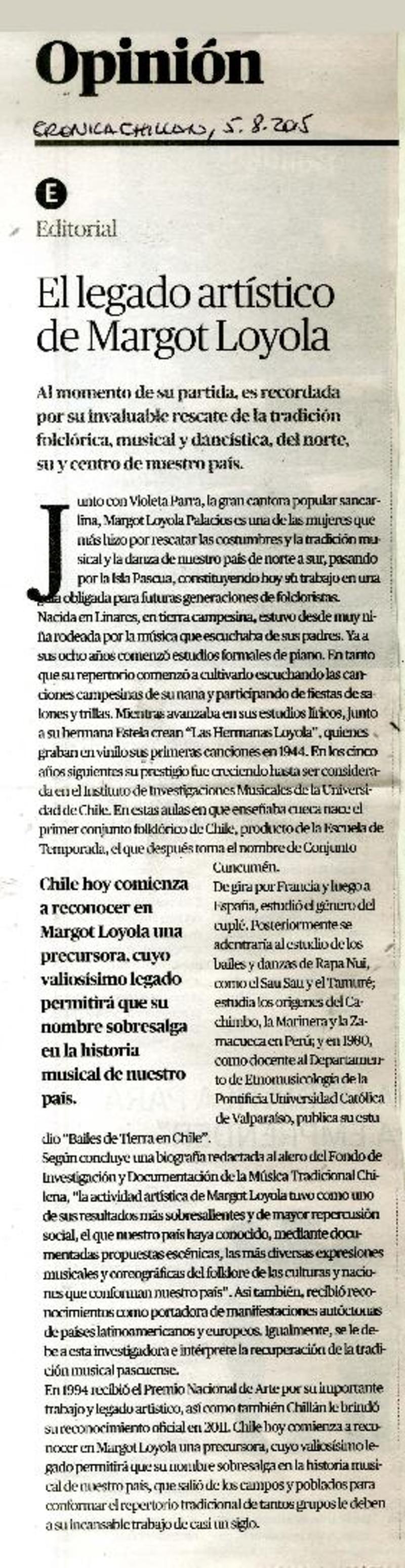 El legado artístico de Margot Loyola. [artículo]