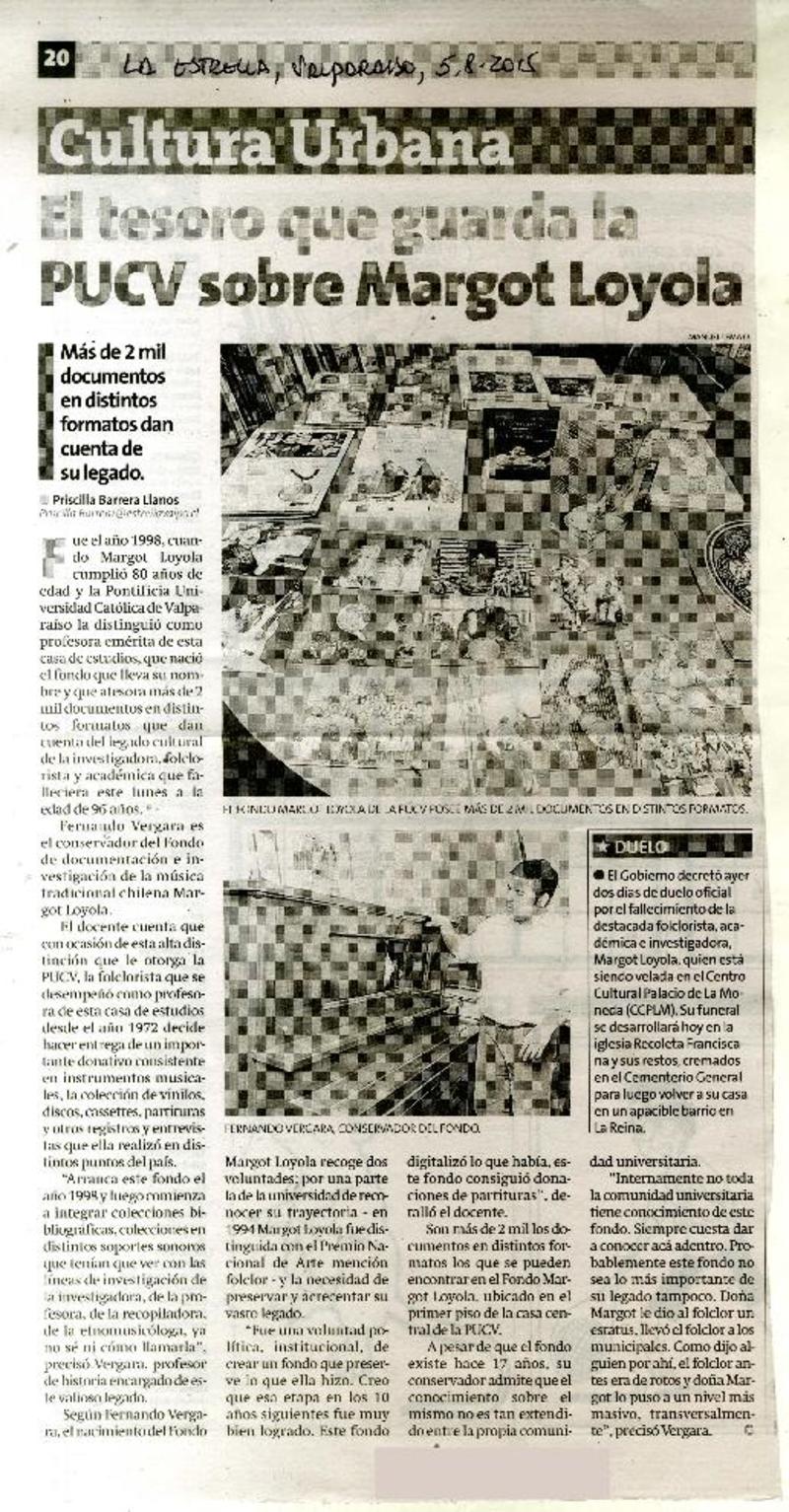 El tesoro que guarda la PUCV sobre Margot Loyola [artículo] Priscilla Barrera Llanos.