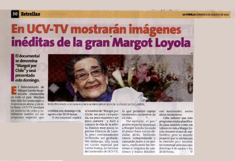 En UCV-TV mostrarán imágenes inéditas de la gran Margot Loyola. [artículo]