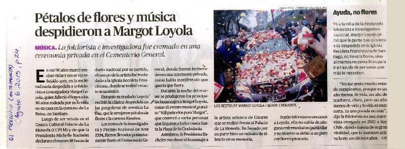 Pétalos de flores y música despidieron a Margot Loyola. [artículo]