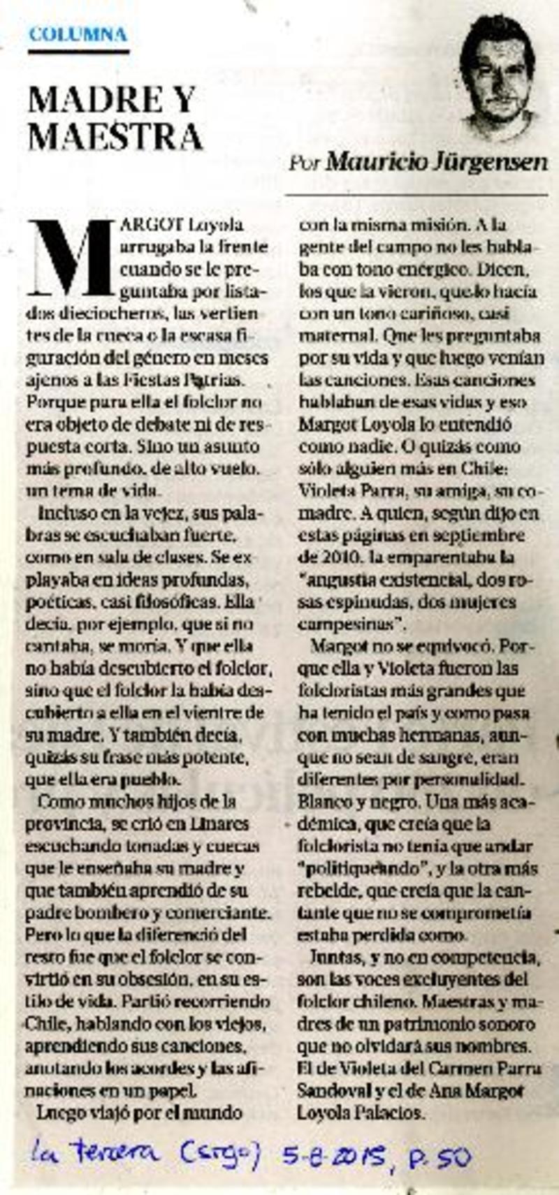 "Violeta Parra era genial, no nunca lo fui" [artículo] Mauricio Jürgensen.