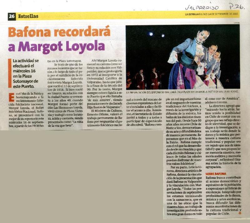 Bafona recordará a Margot Loyola. [artículo]