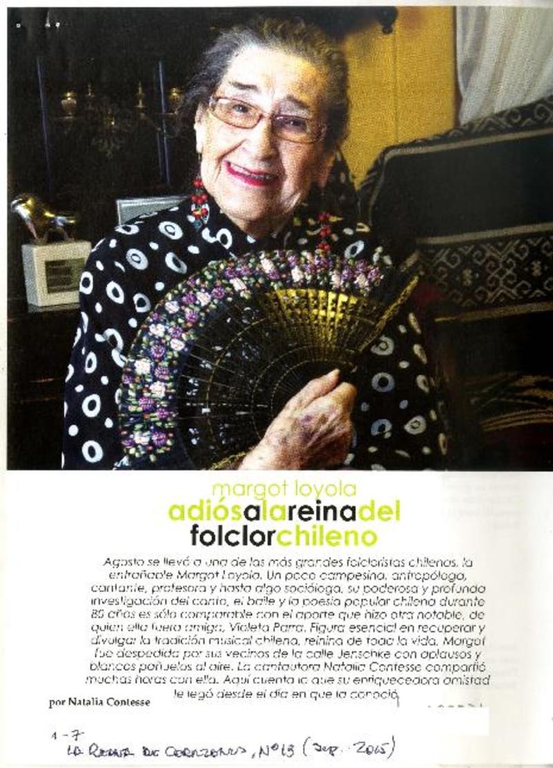 Margot Loyola : adiós a la reina del folclor chileno [artículo] Natalia Contese.