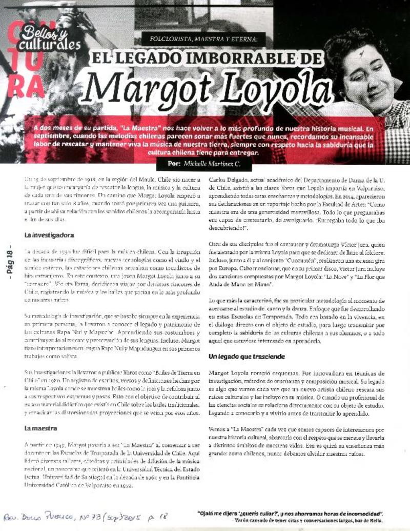 El legado imborrable de Margot Loyola [artículo] Michelle Martínez C.