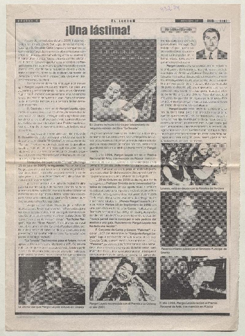 ¡Una lástima! [artículo] Manuel Quevedo.