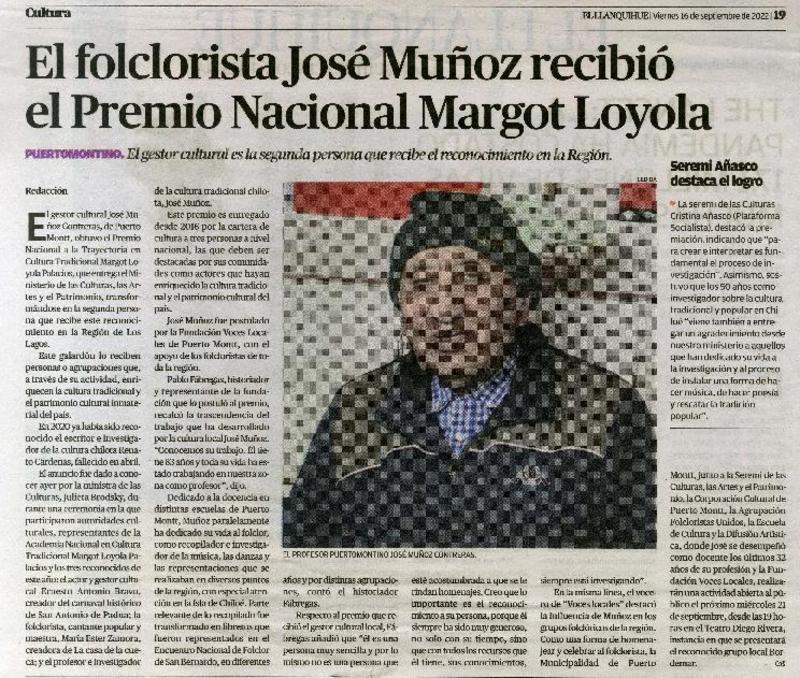 El folclorista José Muñoz recibió el Premio Nacional Margot Loyola [artículo].
