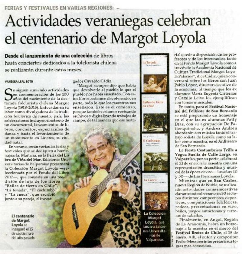 Actividades veraniegas celebran el centenario de Margot Loyola [artículo] Vanessa Leal Soto.