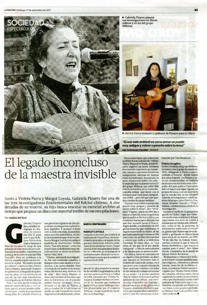 "Margot Loyola nos dio instrucciones clarísimas sobre qué hacer con el folclor" [artículo] Juan Carlos Ramírez F.