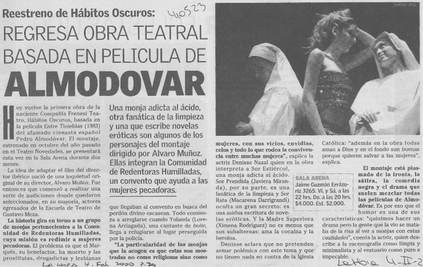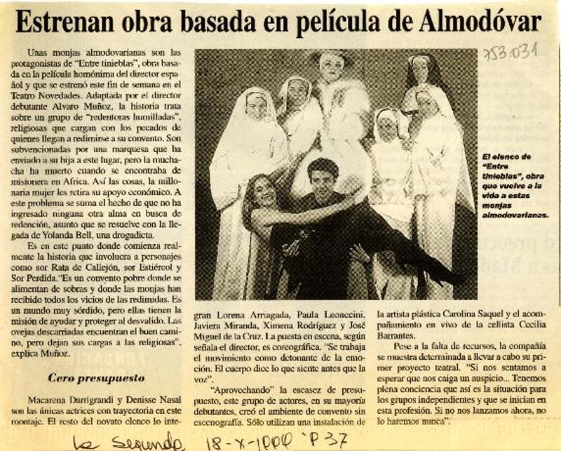 Estrenan obra basada en película de Almodóvar. [artículo]