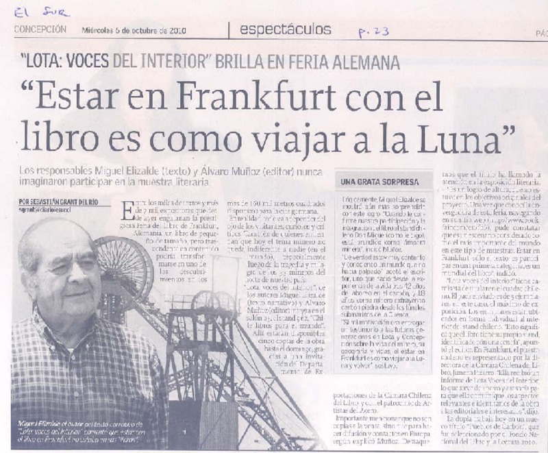 Estar en Frankfurt con el libro es como viajar a la luna [artículo] Sebastián Grant del Río.