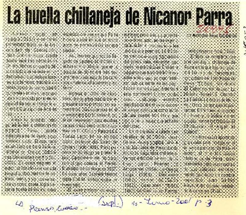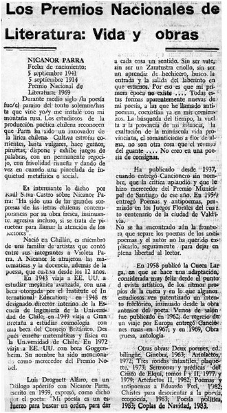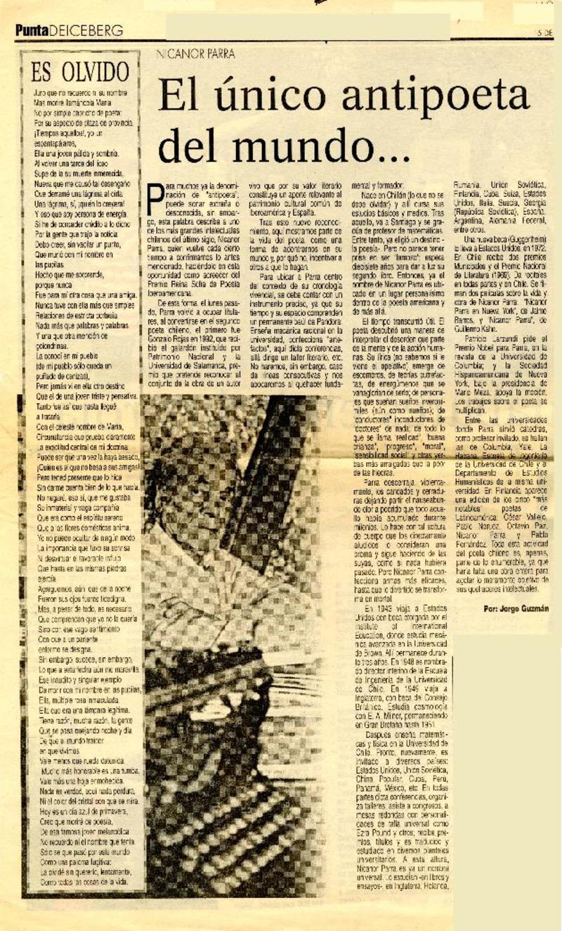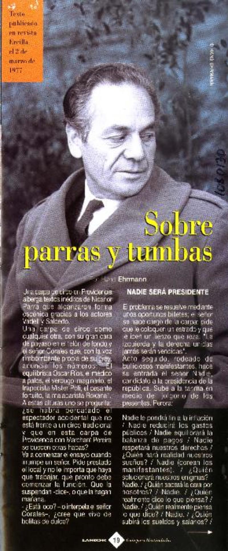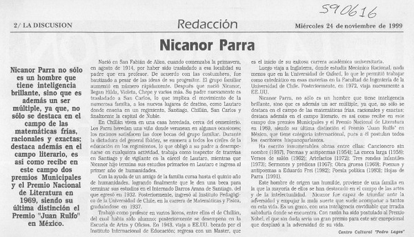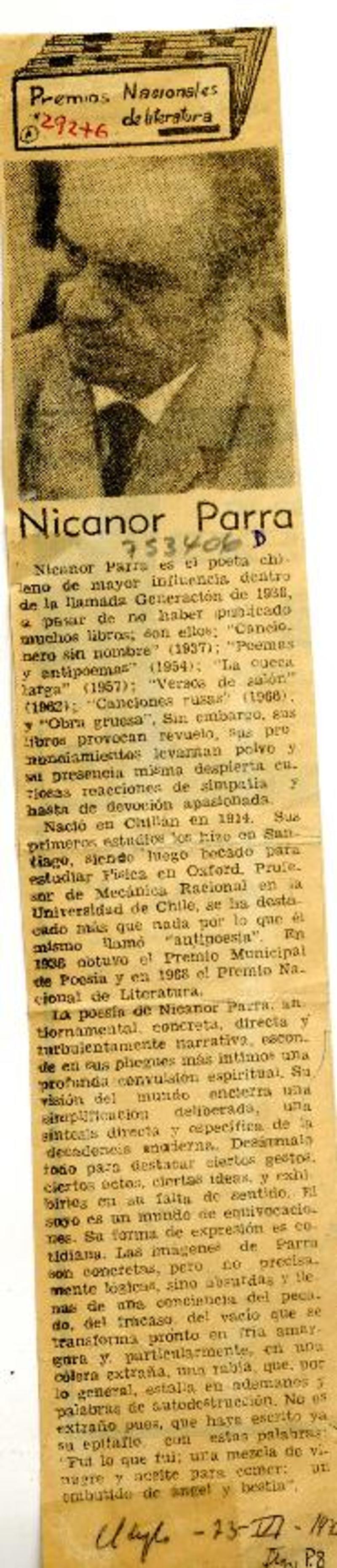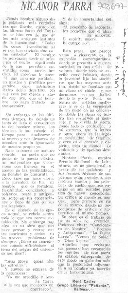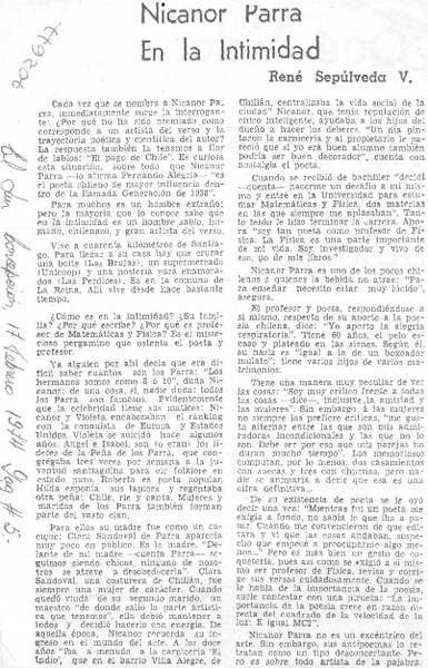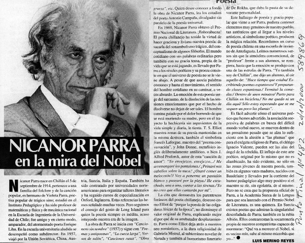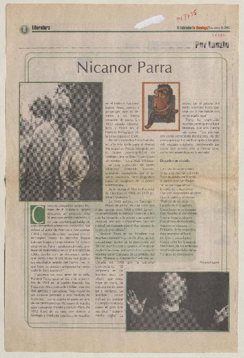 Algo más sobre Nicanor Parra [artículo] Luis Merino Reyes.