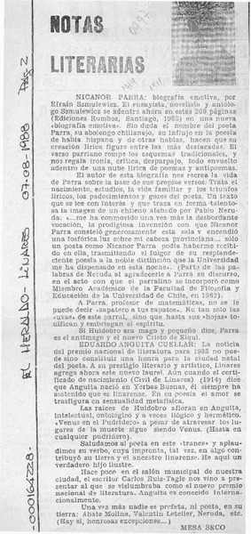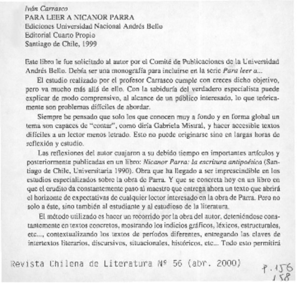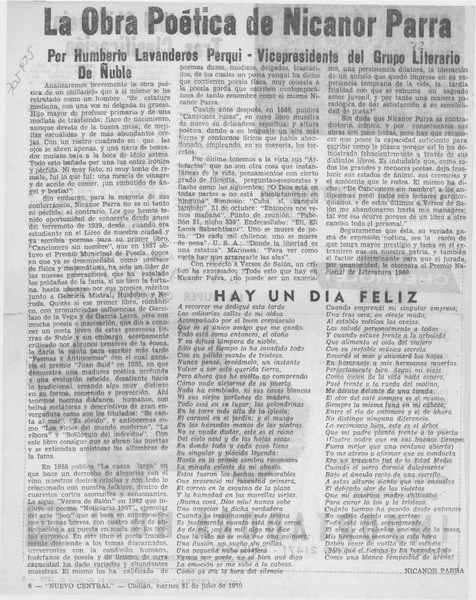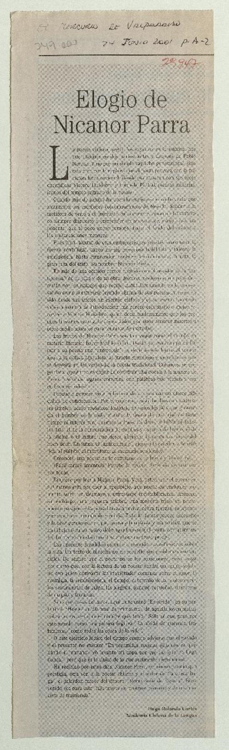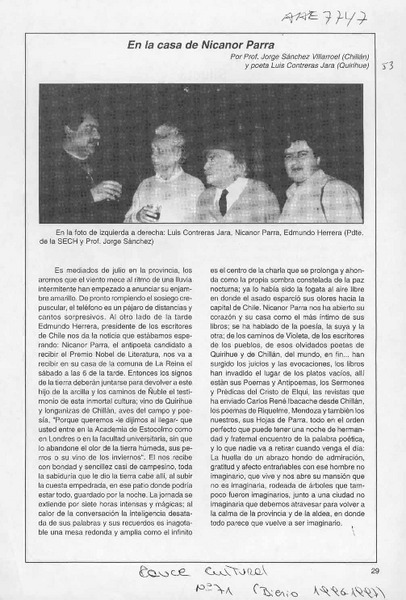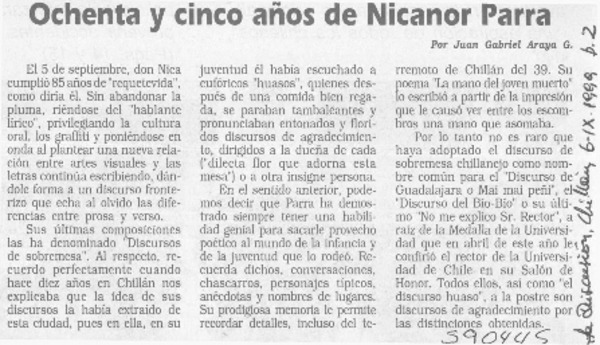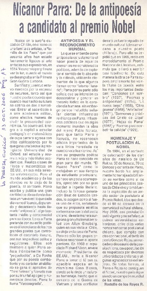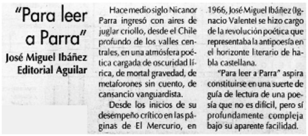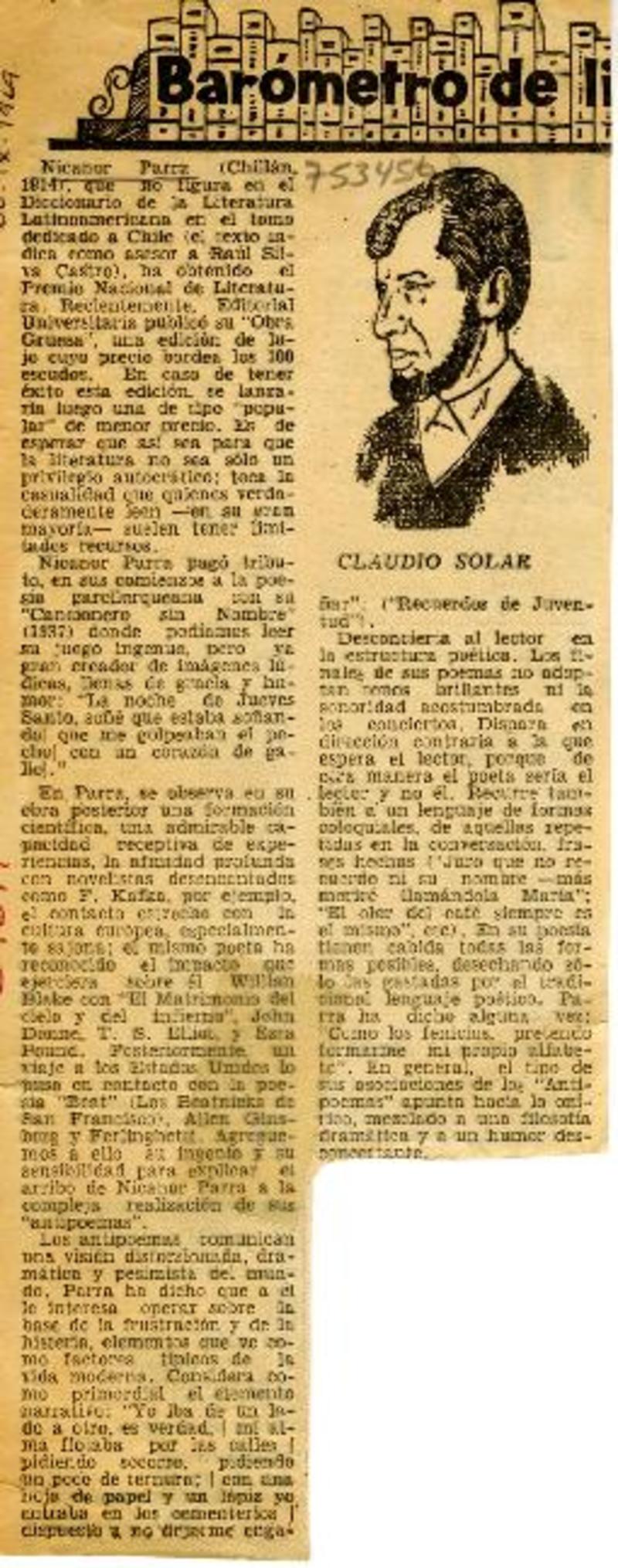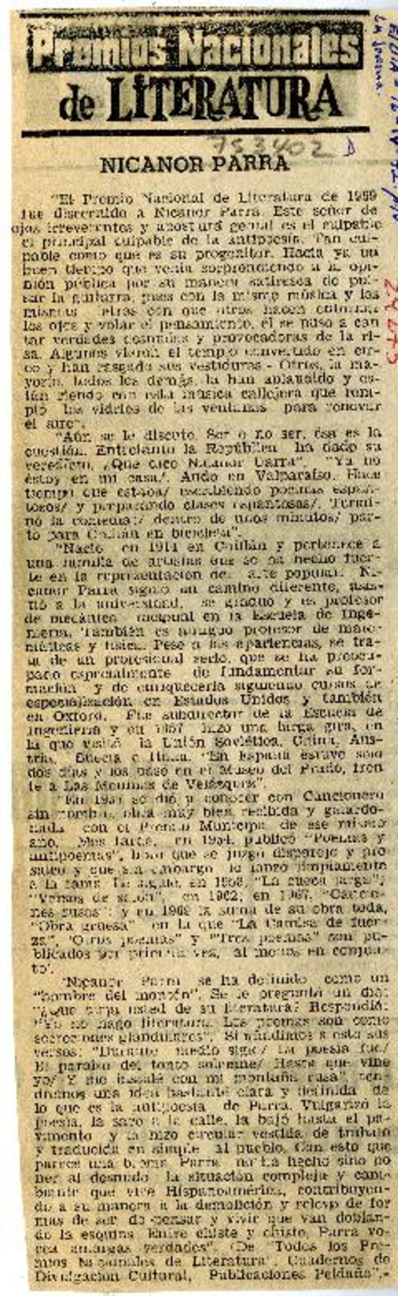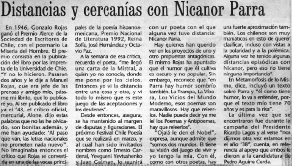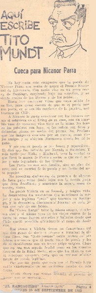 Algo más sobre Nicanor Parra [artículo] Luis Merino Reyes.
