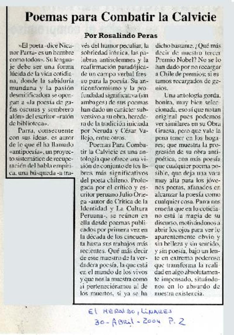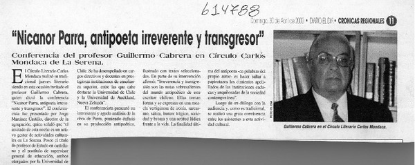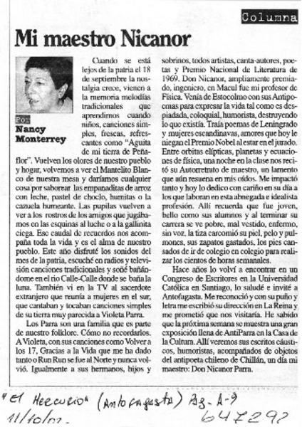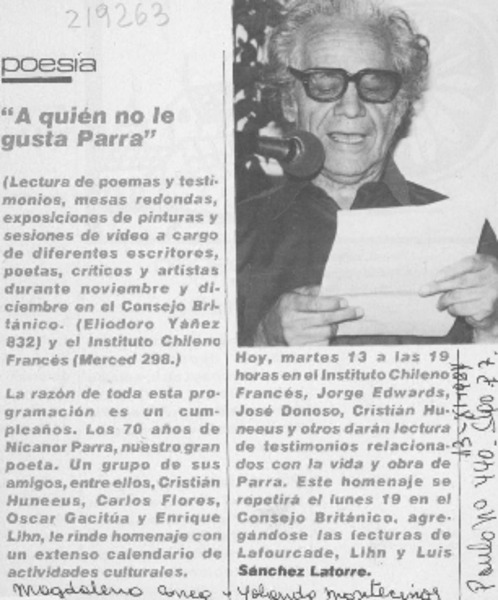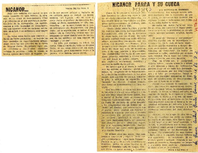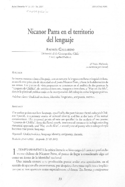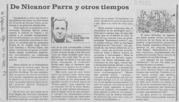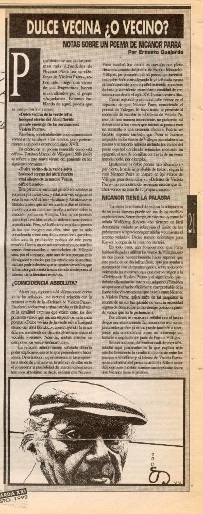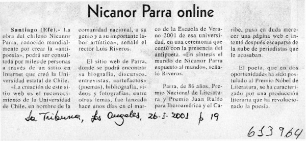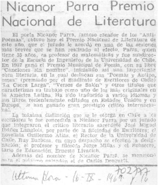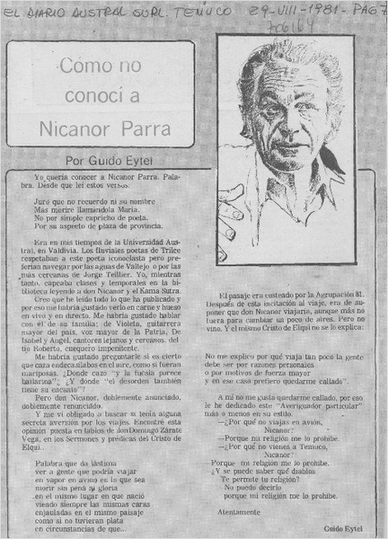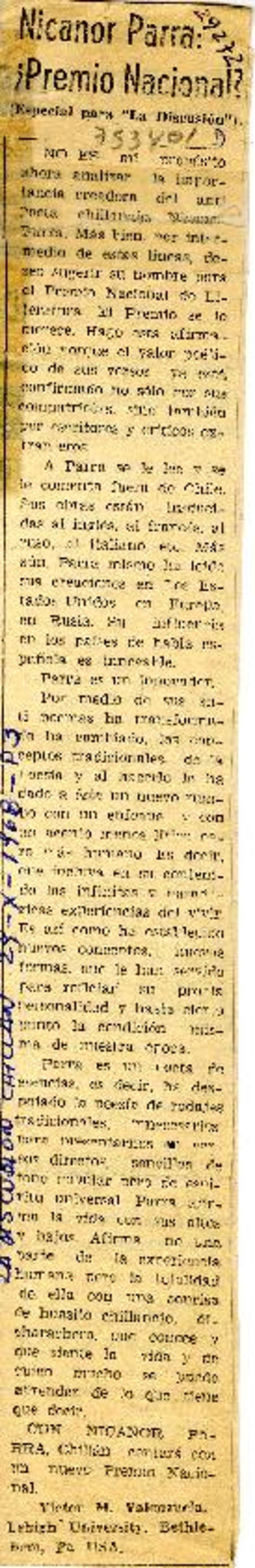 Algo más sobre Nicanor Parra [artículo] Luis Merino Reyes.