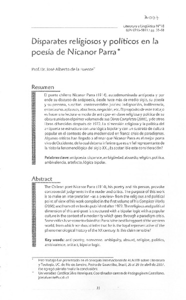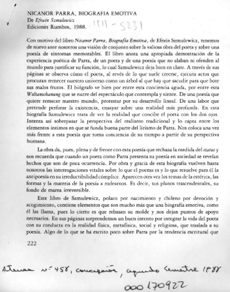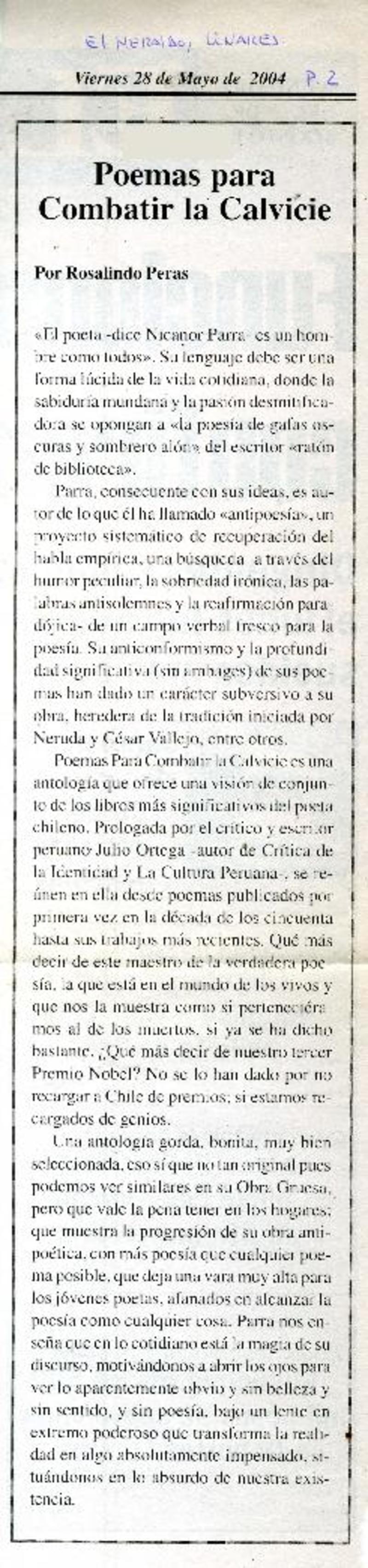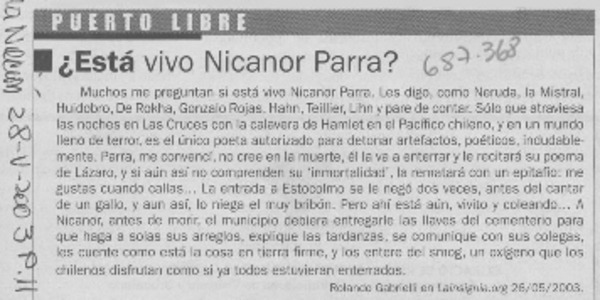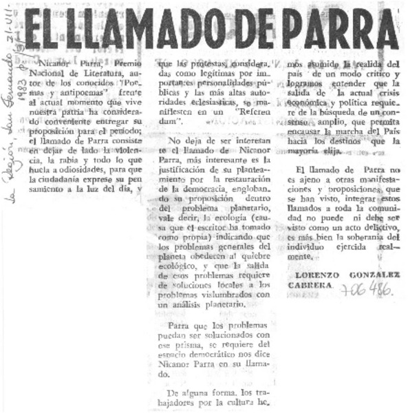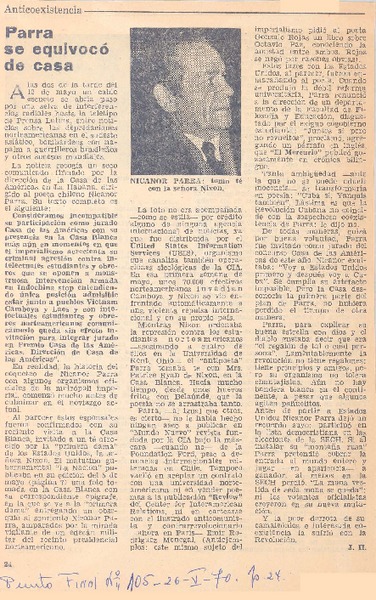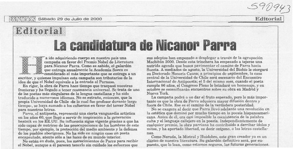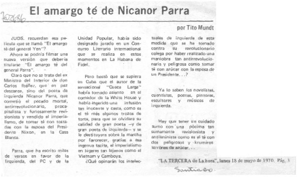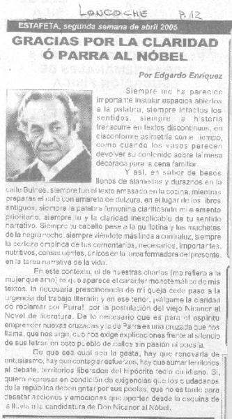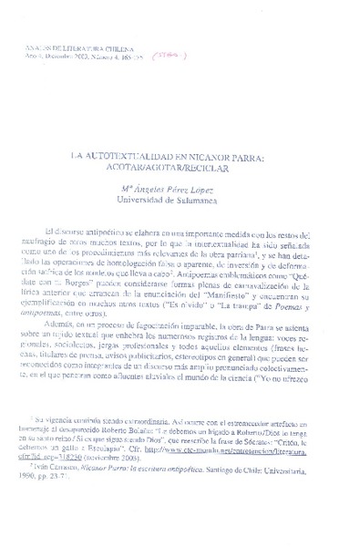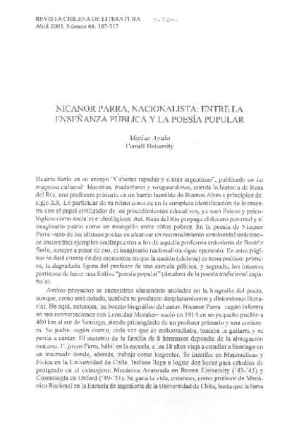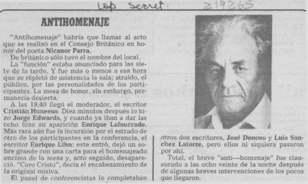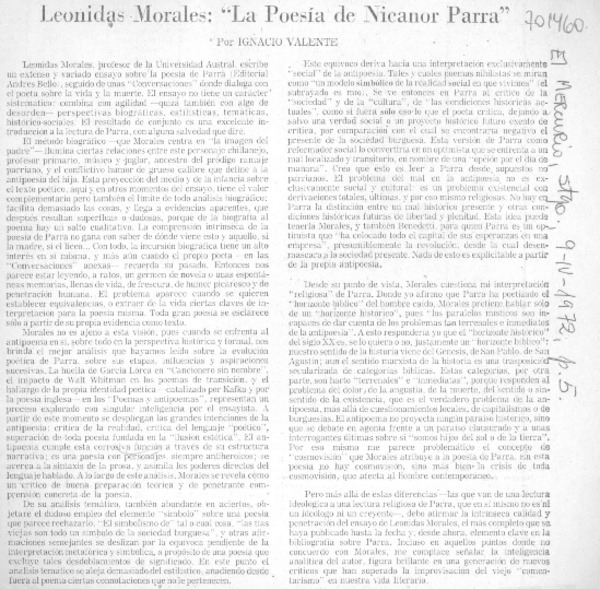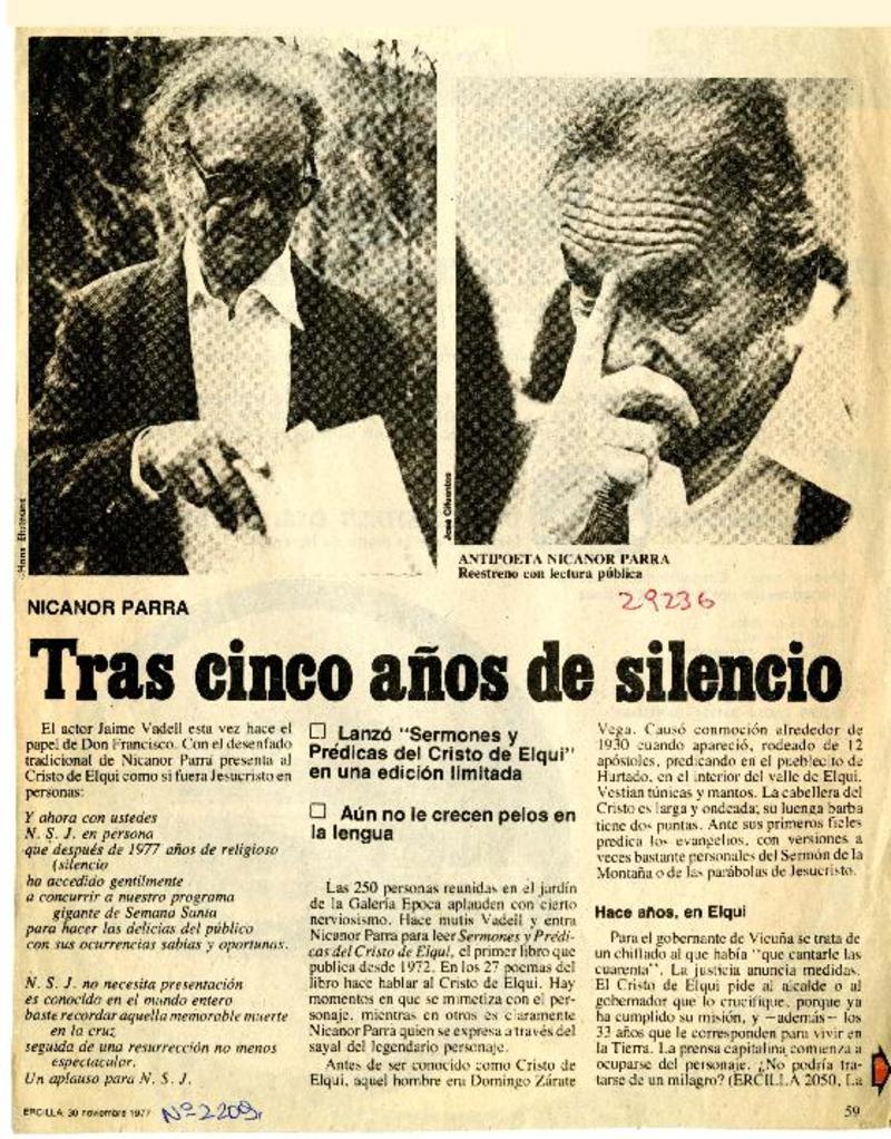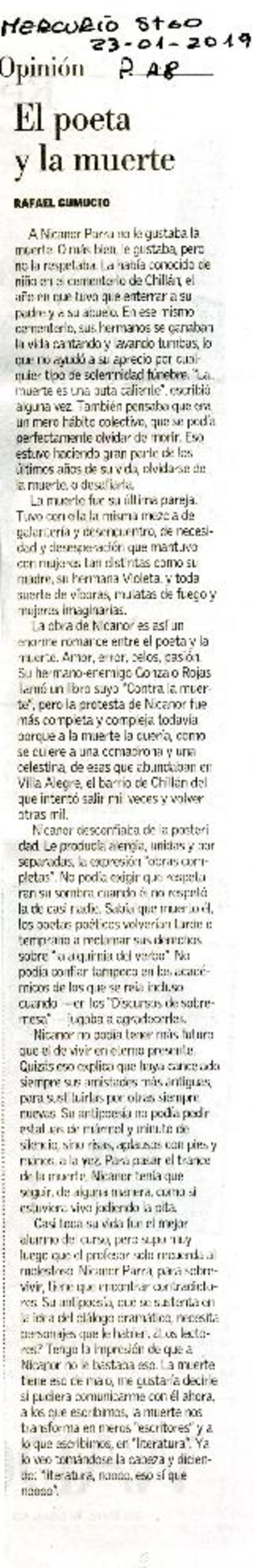 Algo más sobre Nicanor Parra [artículo] Luis Merino Reyes.