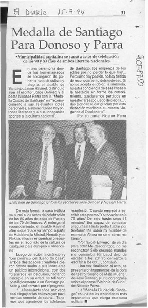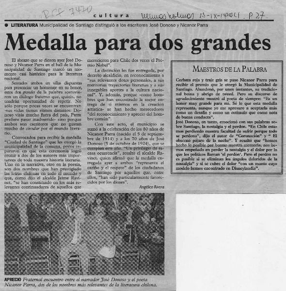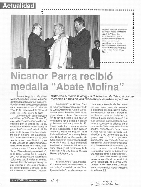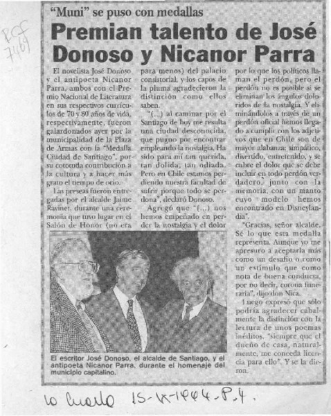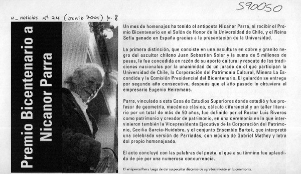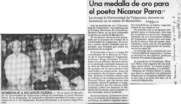 Una Medalla de oro para el poeta Nicanor Parra [artículo].