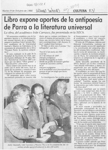 Antipoemas de la antipoesía [artículo] Iván Carrasco M.