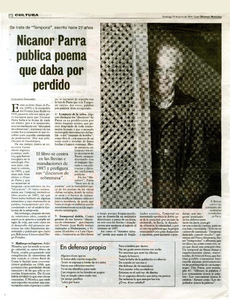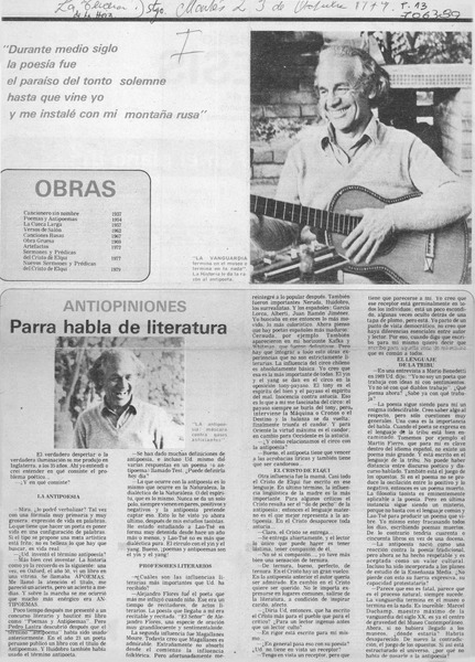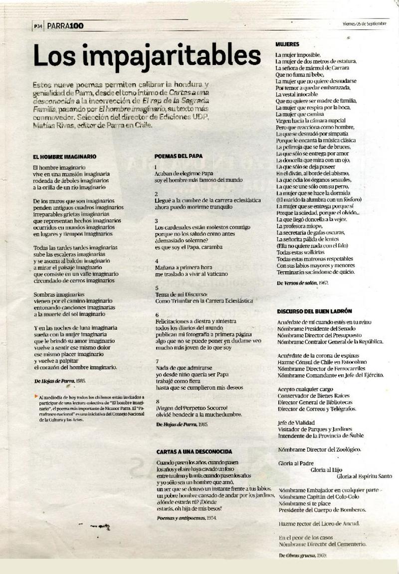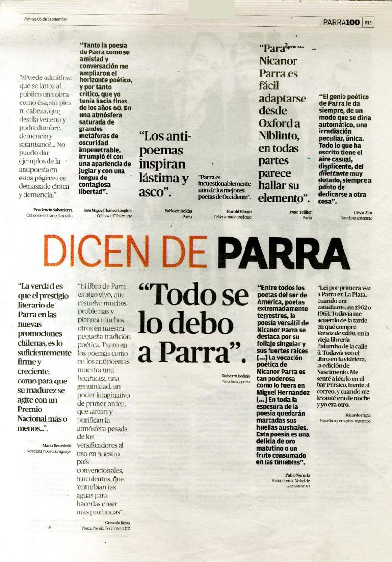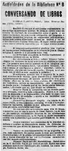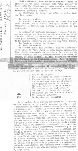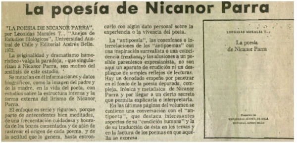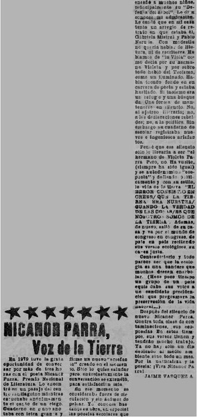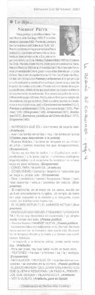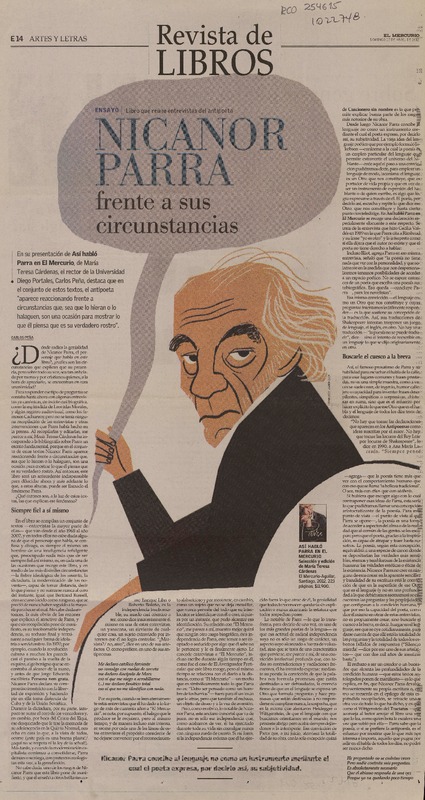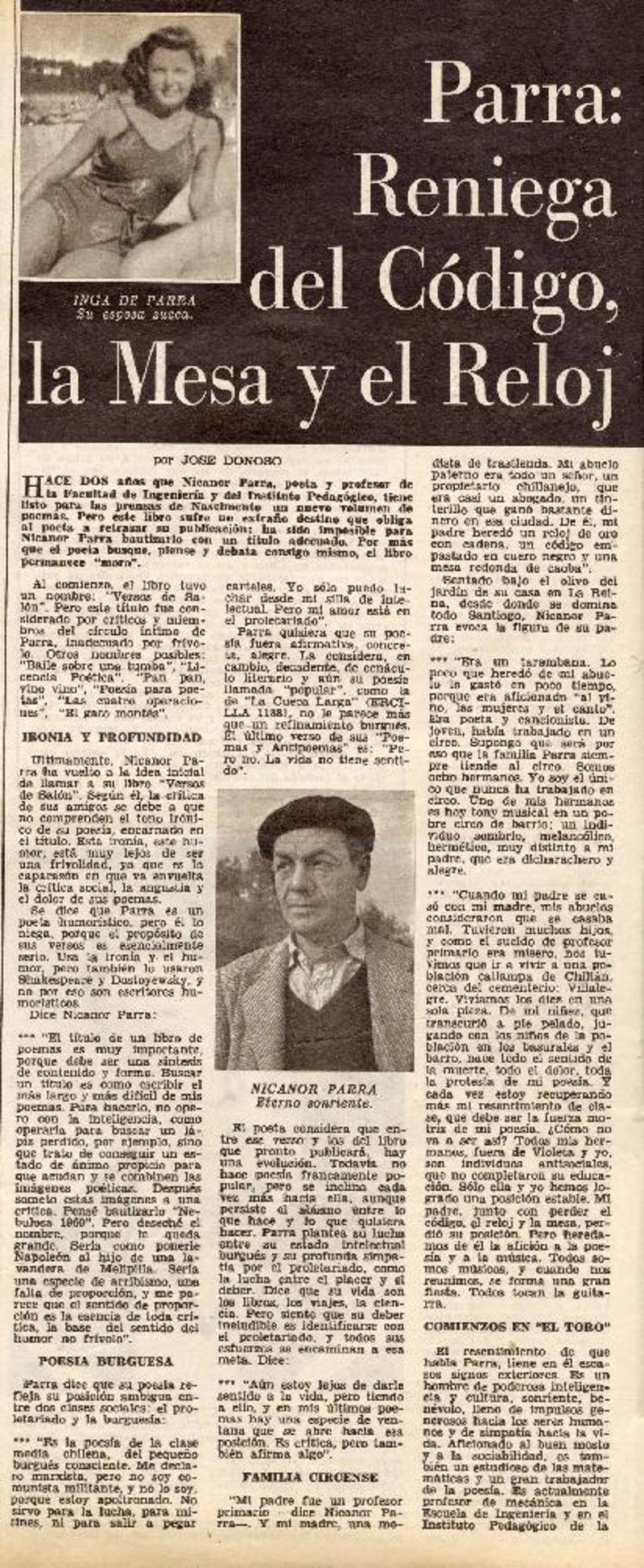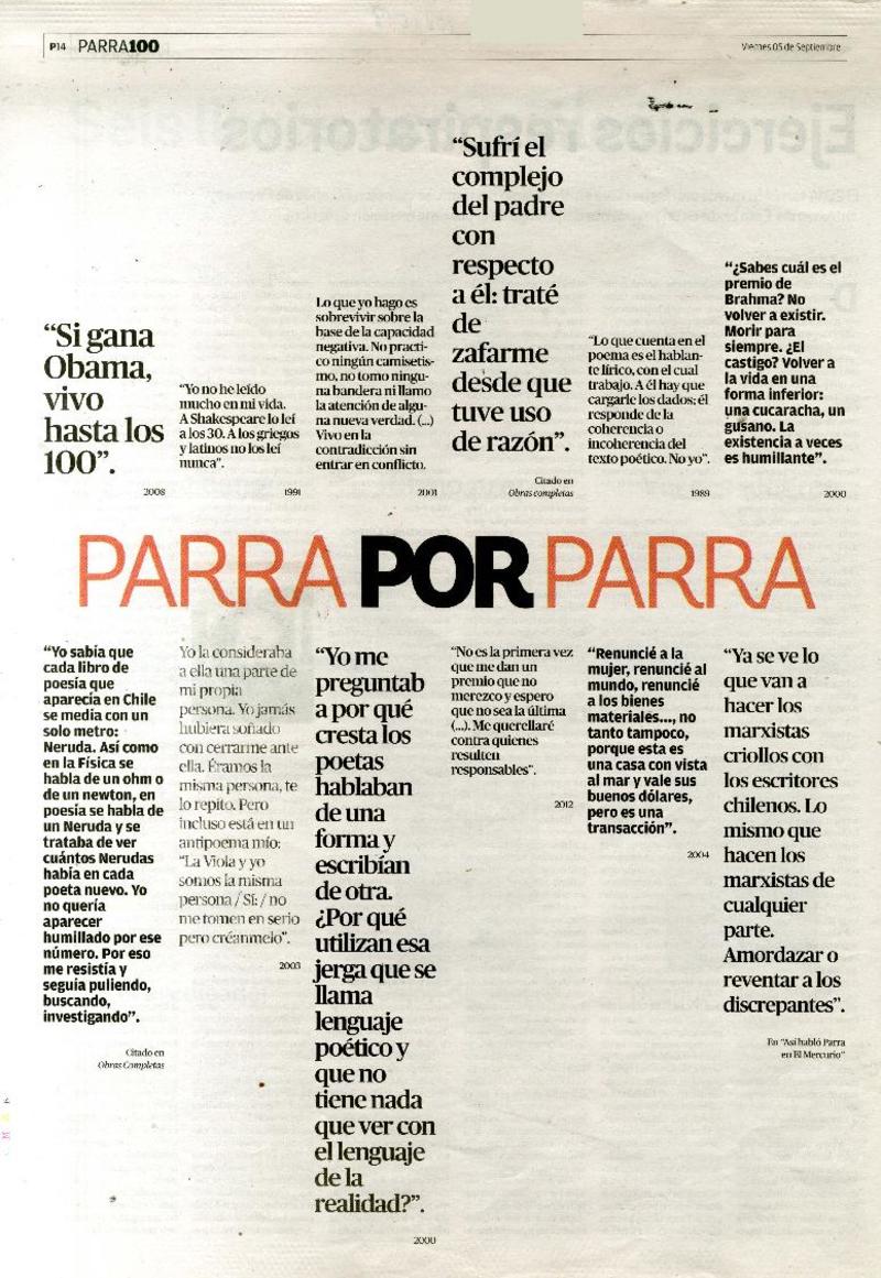 Cárdenas, María Teresa - Autores chilenos - Así habló Parra en El Mercurio - Parra, Nicanor