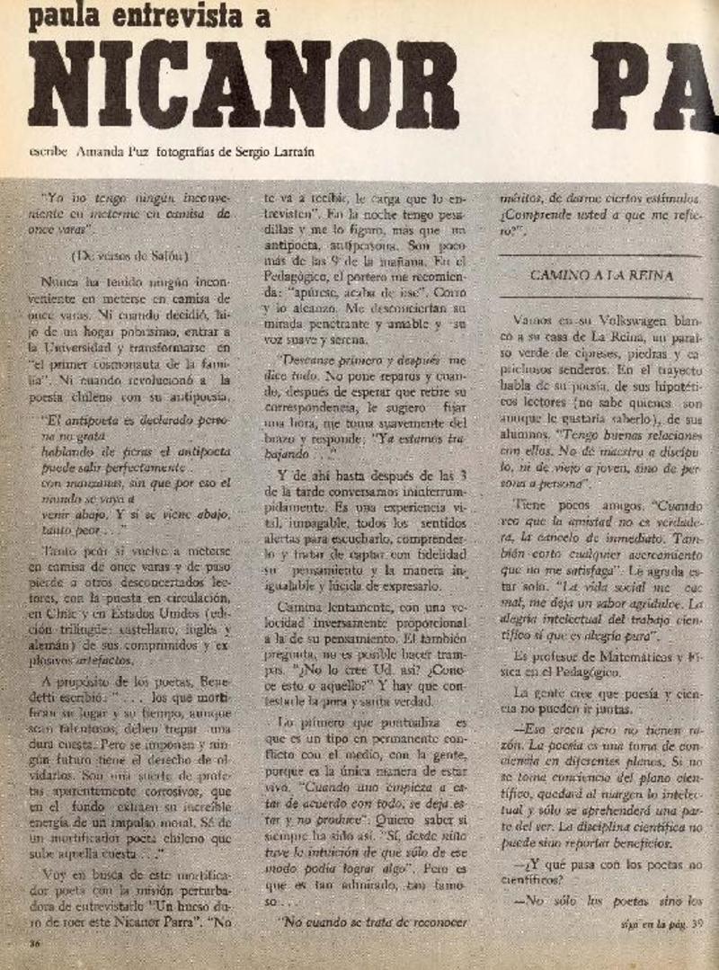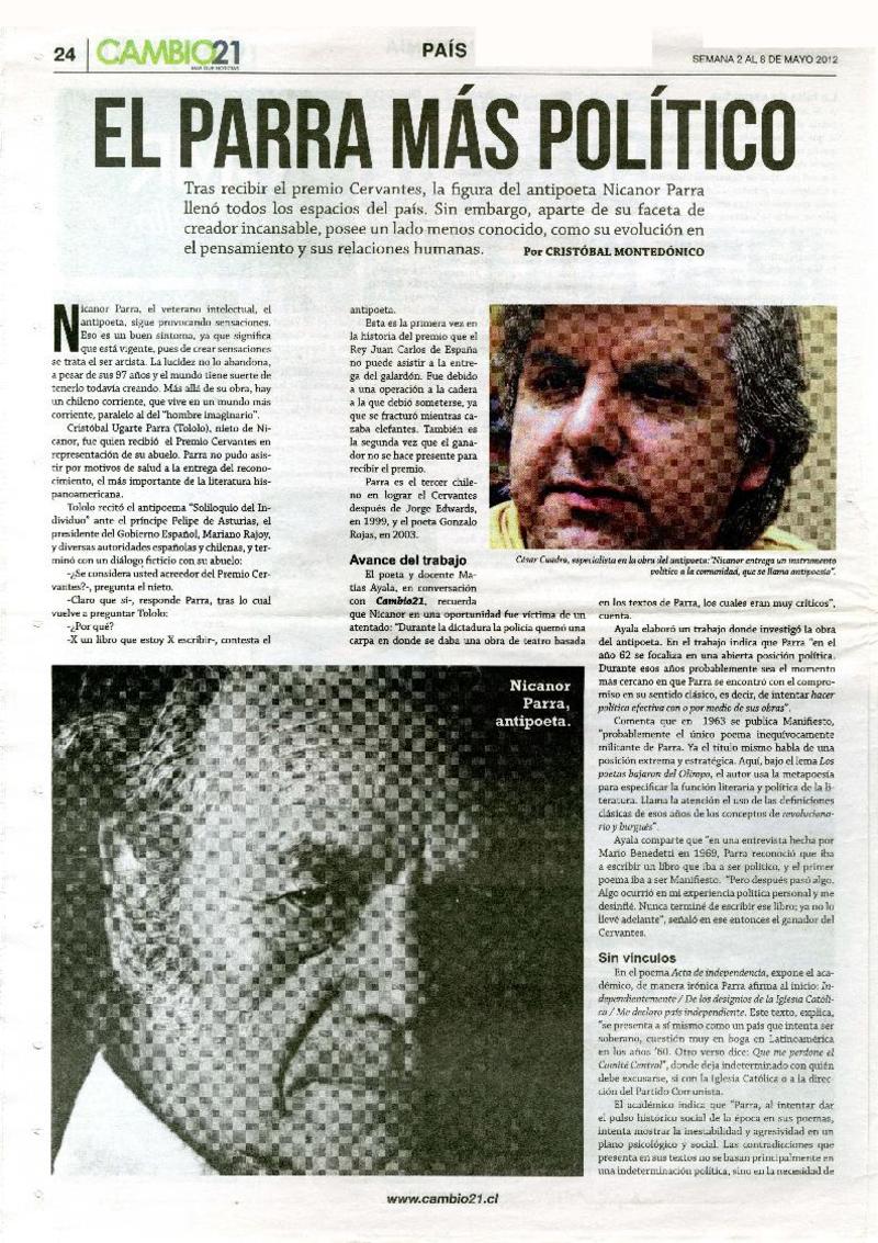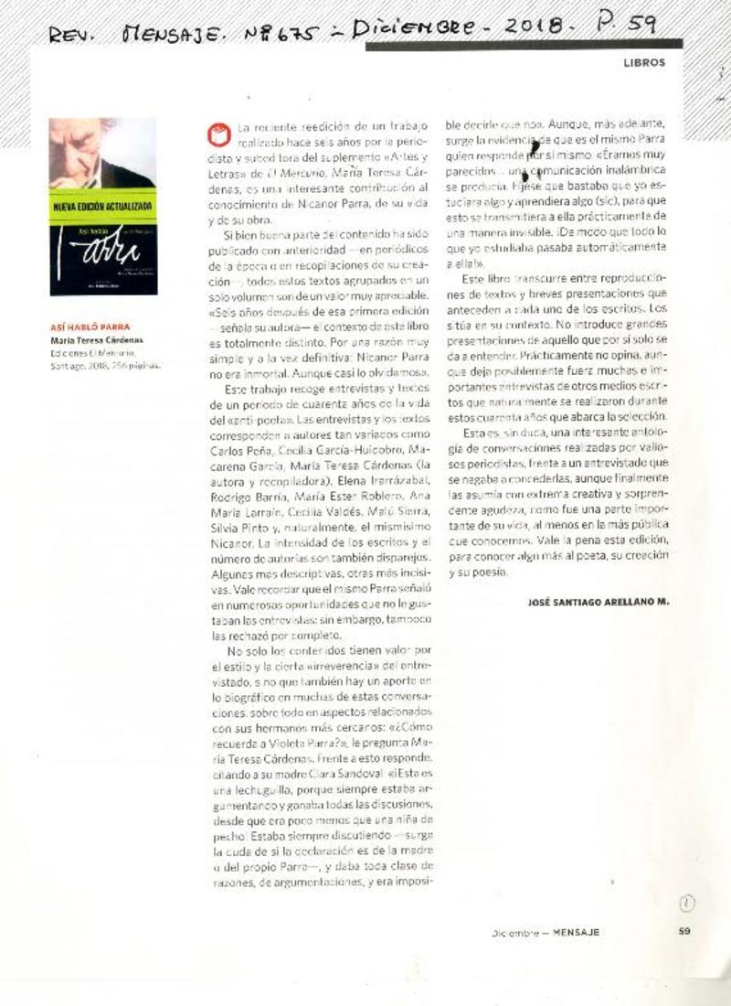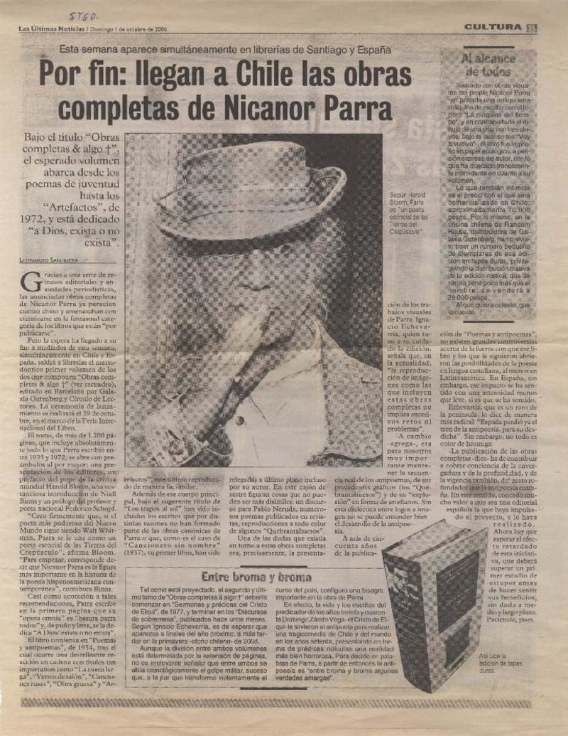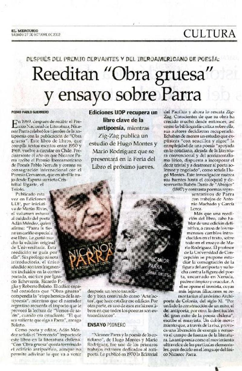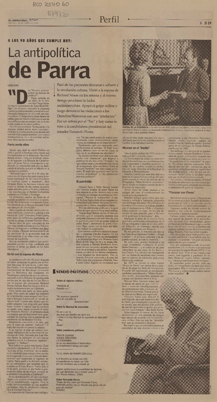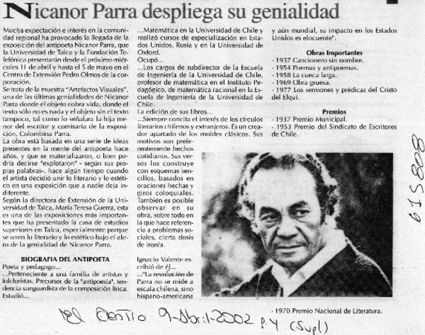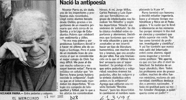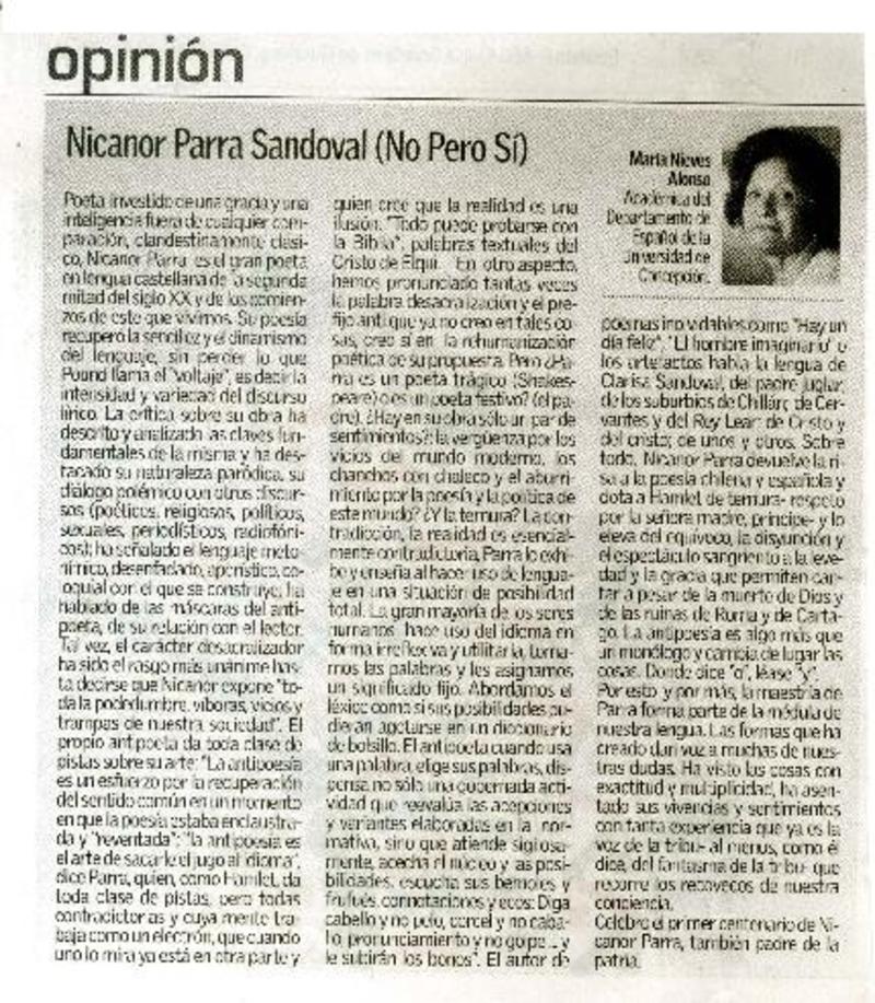 Cárdenas, María Teresa - Autores chilenos - Así habló Parra en El Mercurio - Parra, Nicanor