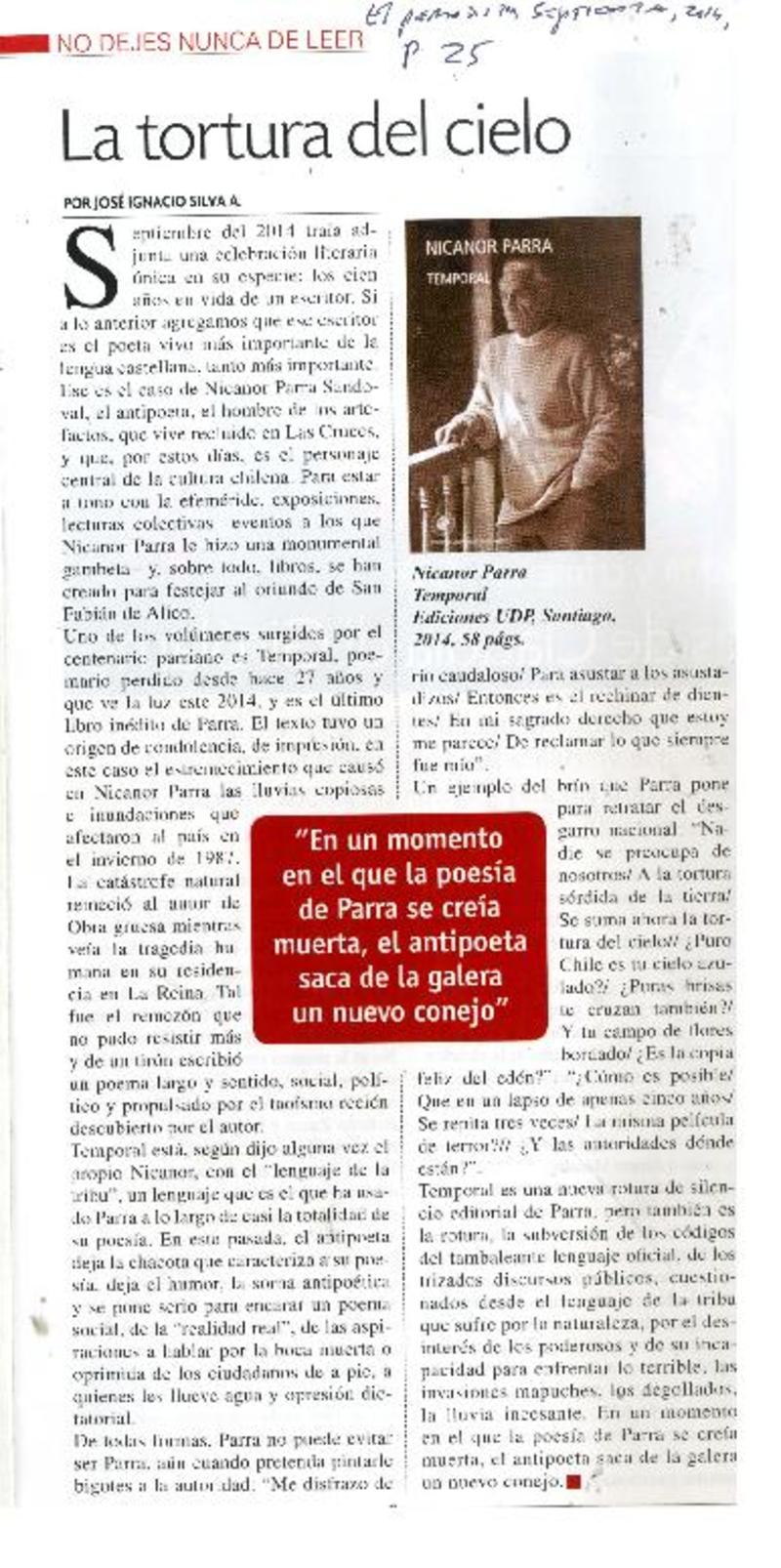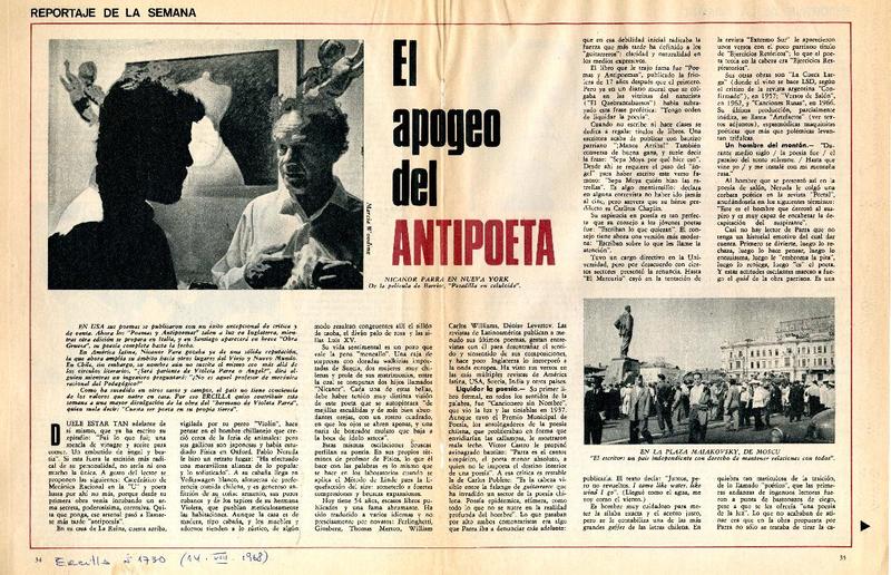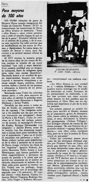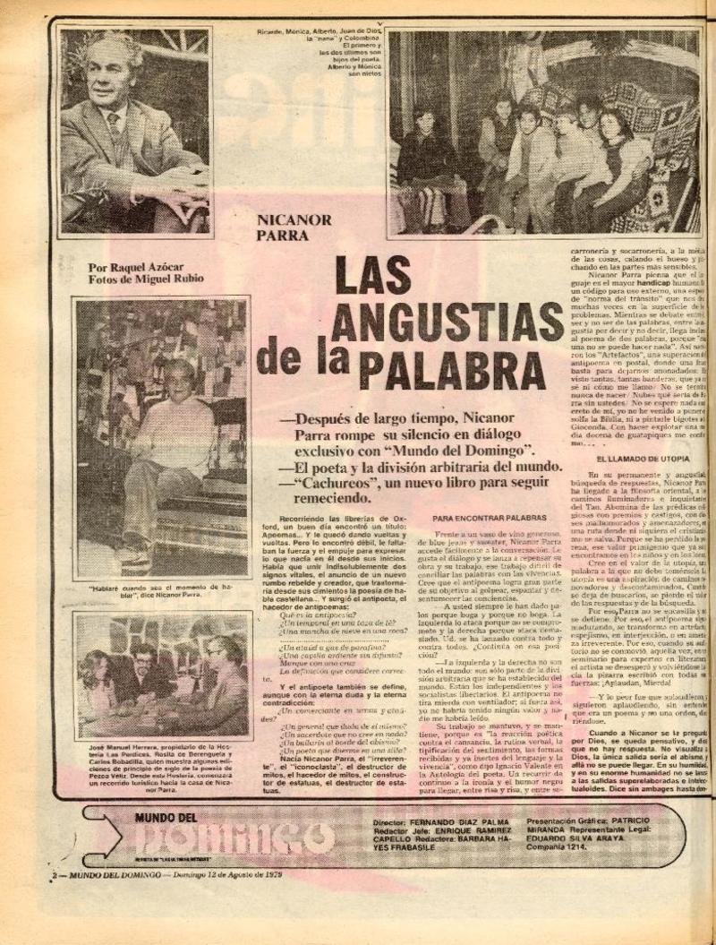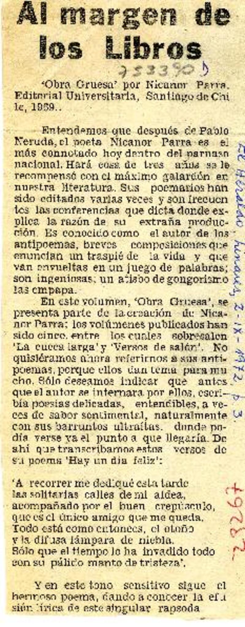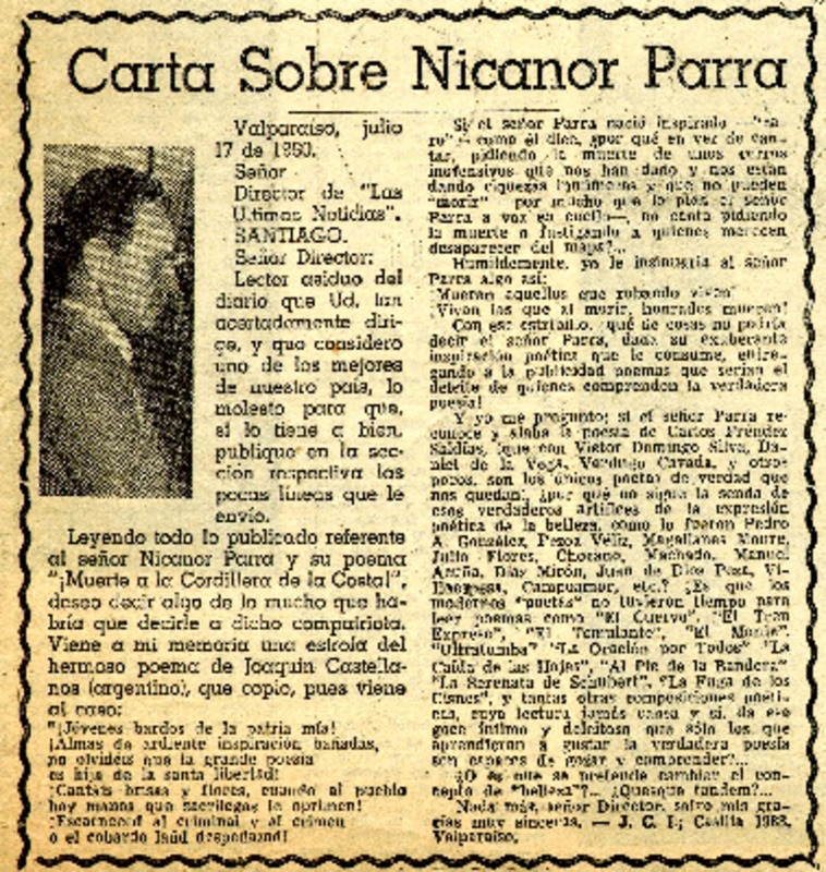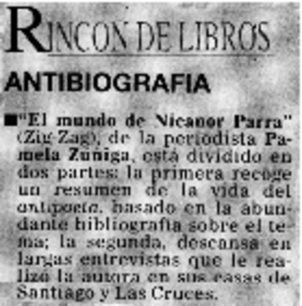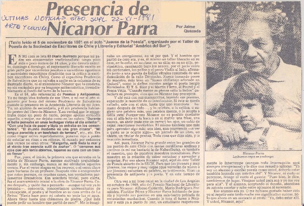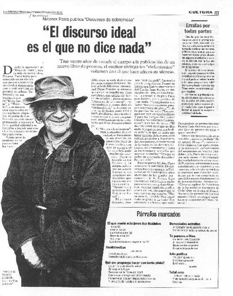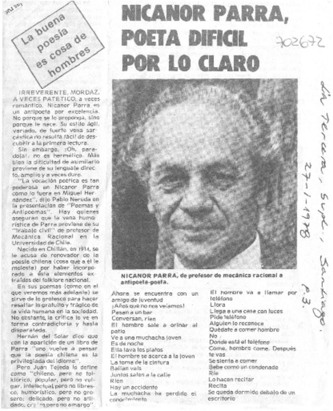 Cárdenas, María Teresa - Autores chilenos - Así habló Parra en El Mercurio - Parra, Nicanor