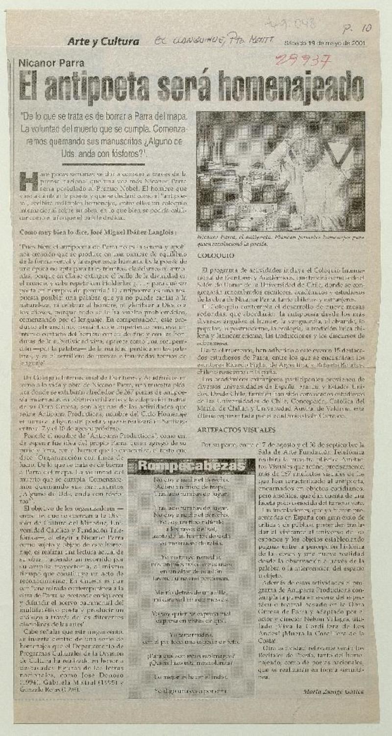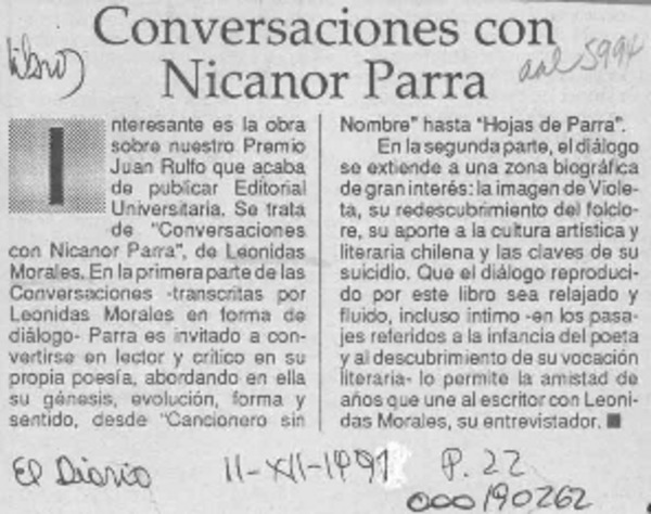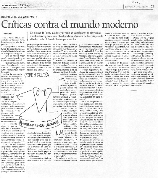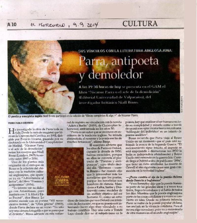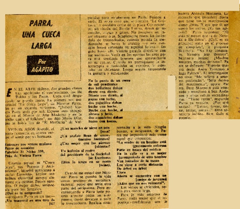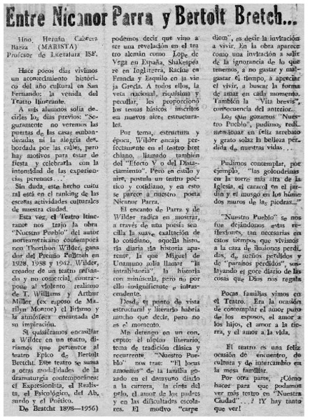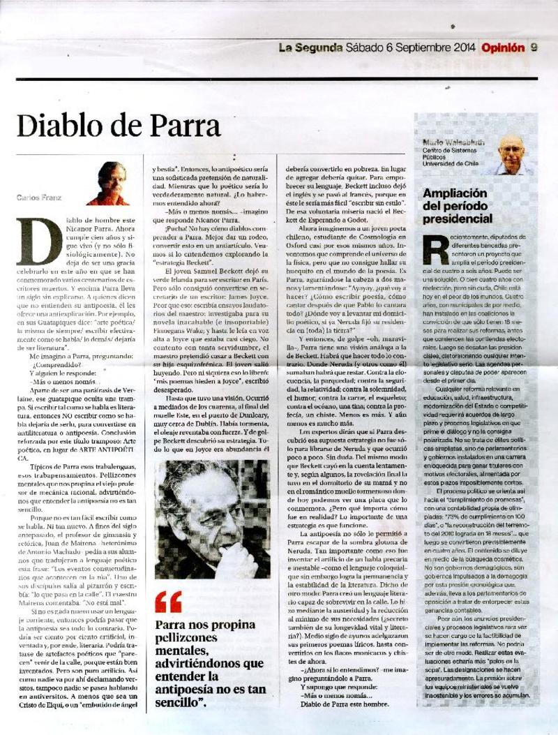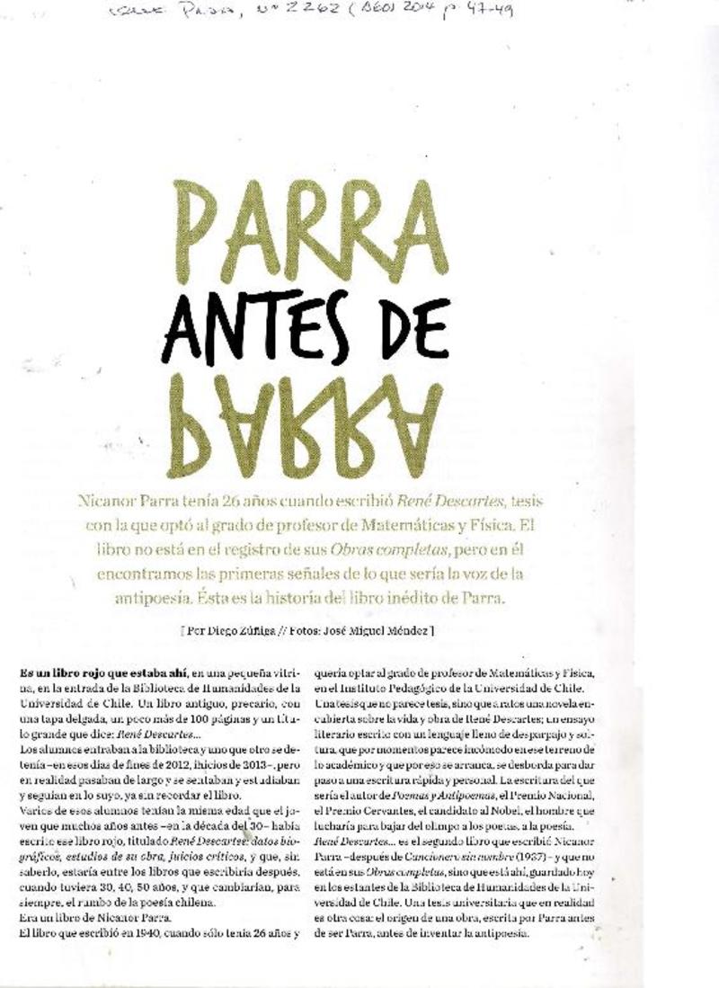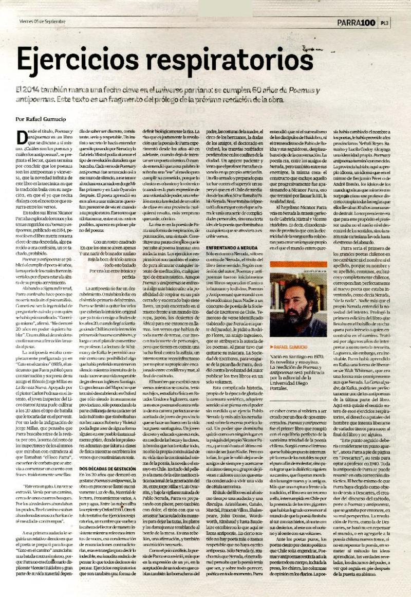 Cárdenas, María Teresa - Autores chilenos - Así habló Parra en El Mercurio - Parra, Nicanor