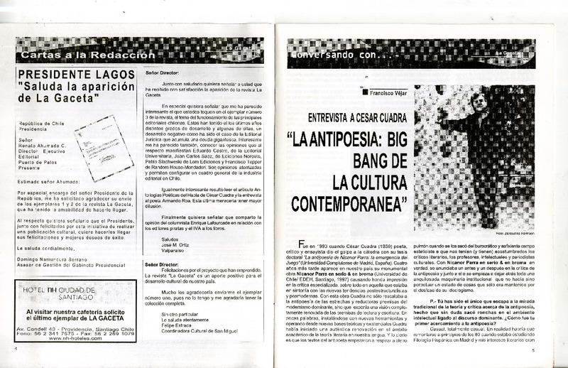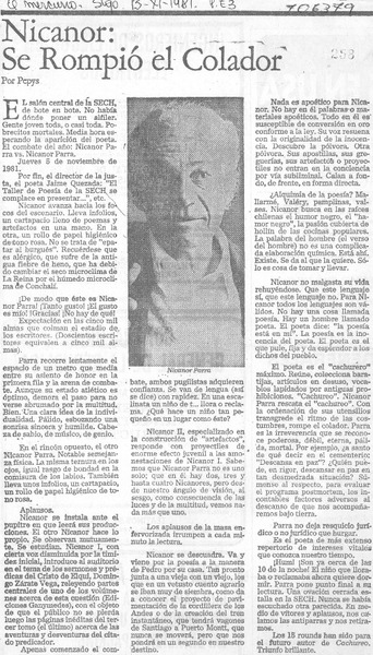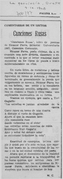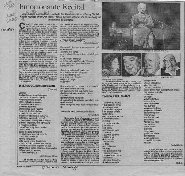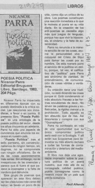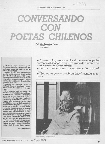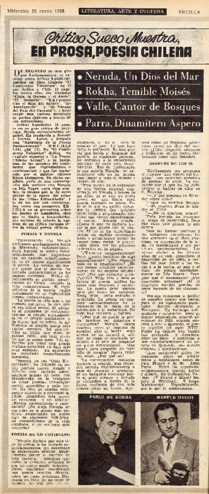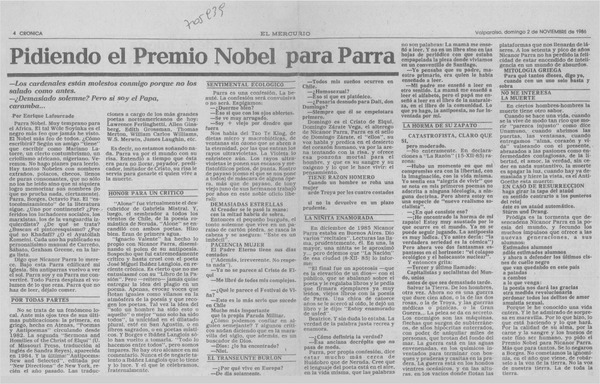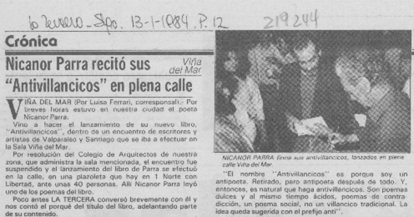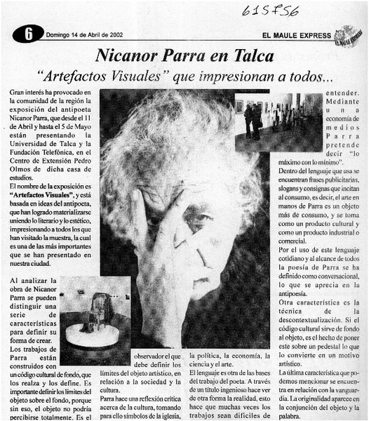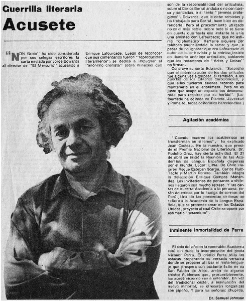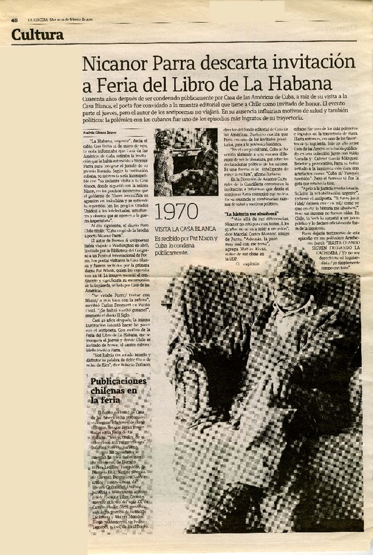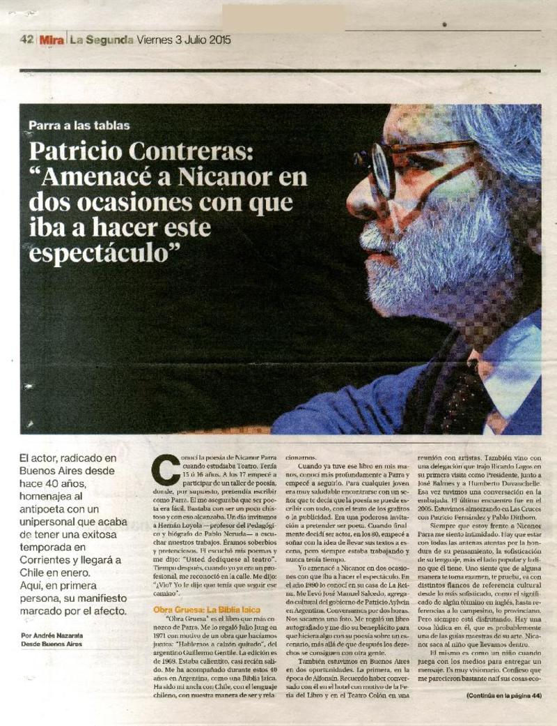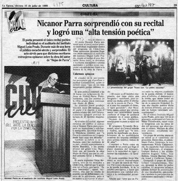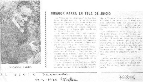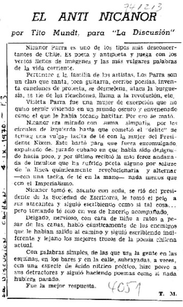 Cárdenas, María Teresa - Autores chilenos - Así habló Parra en El Mercurio - Parra, Nicanor
