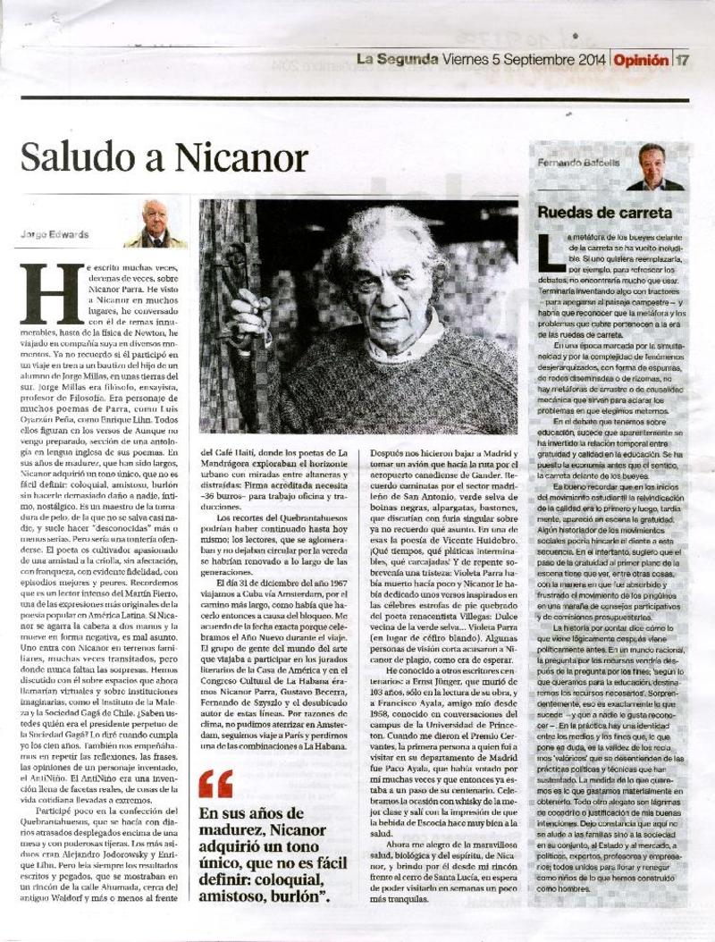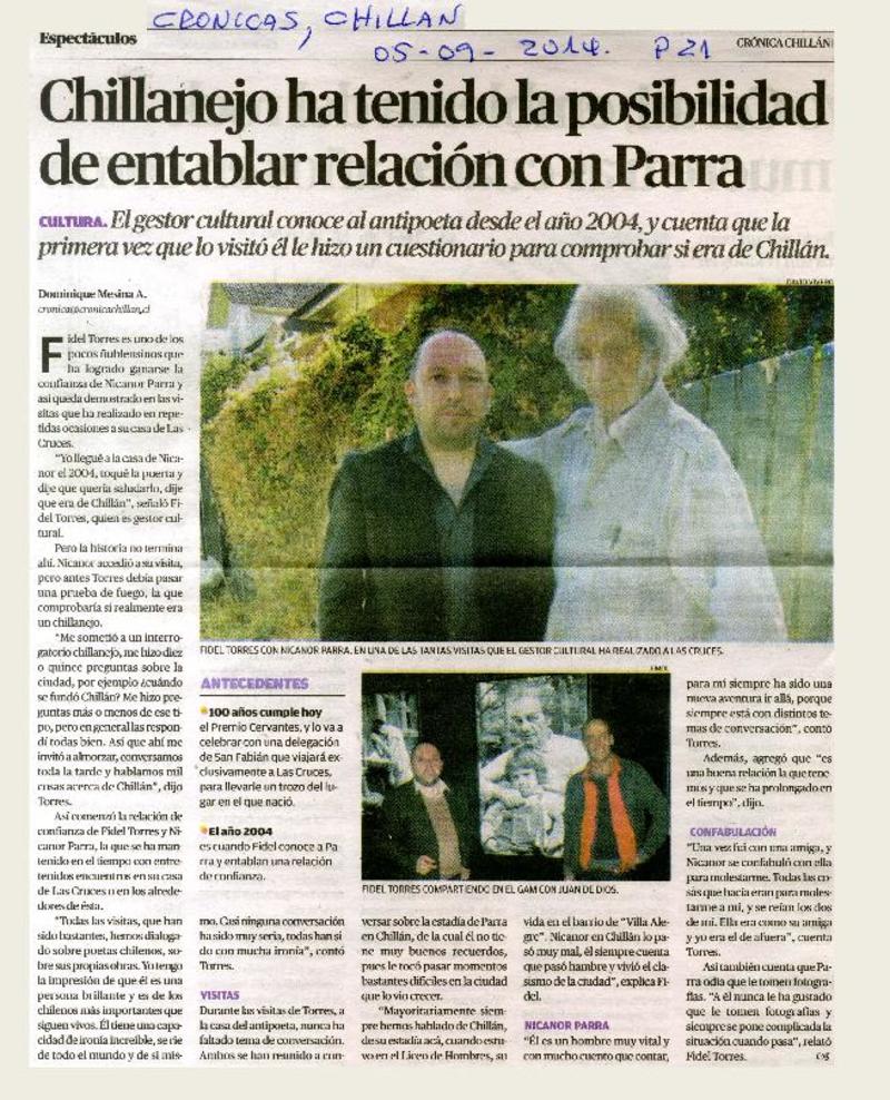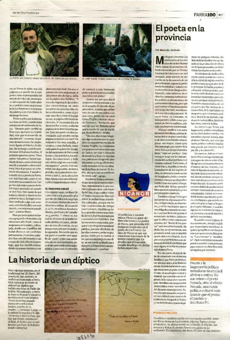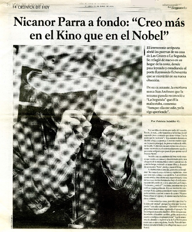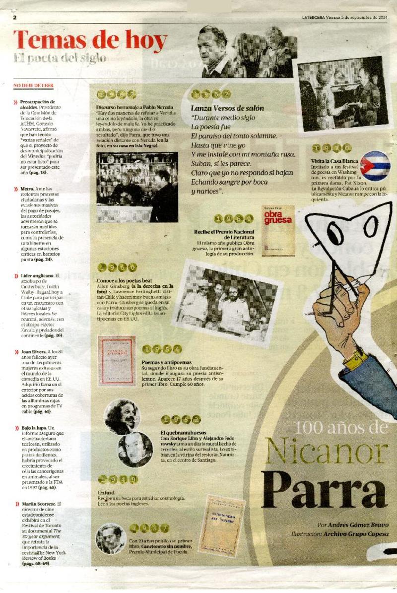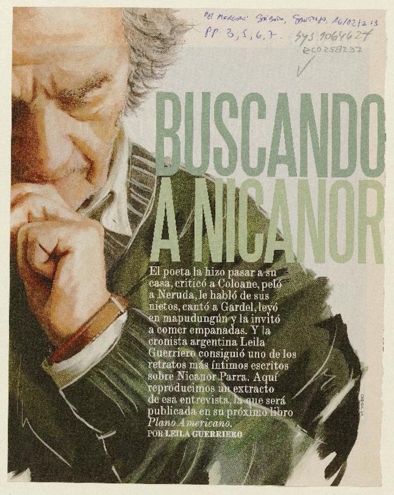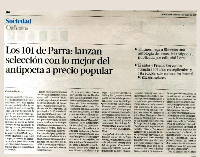 Amigo de Nicanor Parra relata sus lazos narrativos por 14 años [artículo] Catalina Garcés Rondanelli.