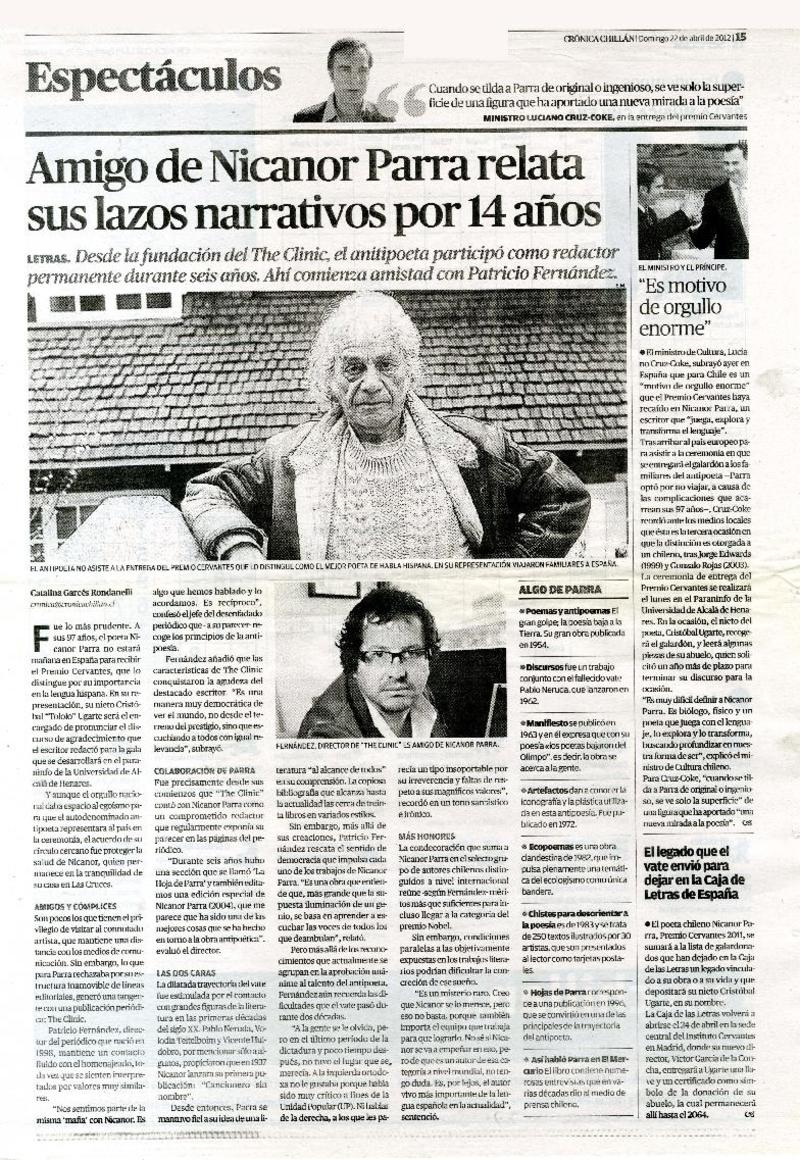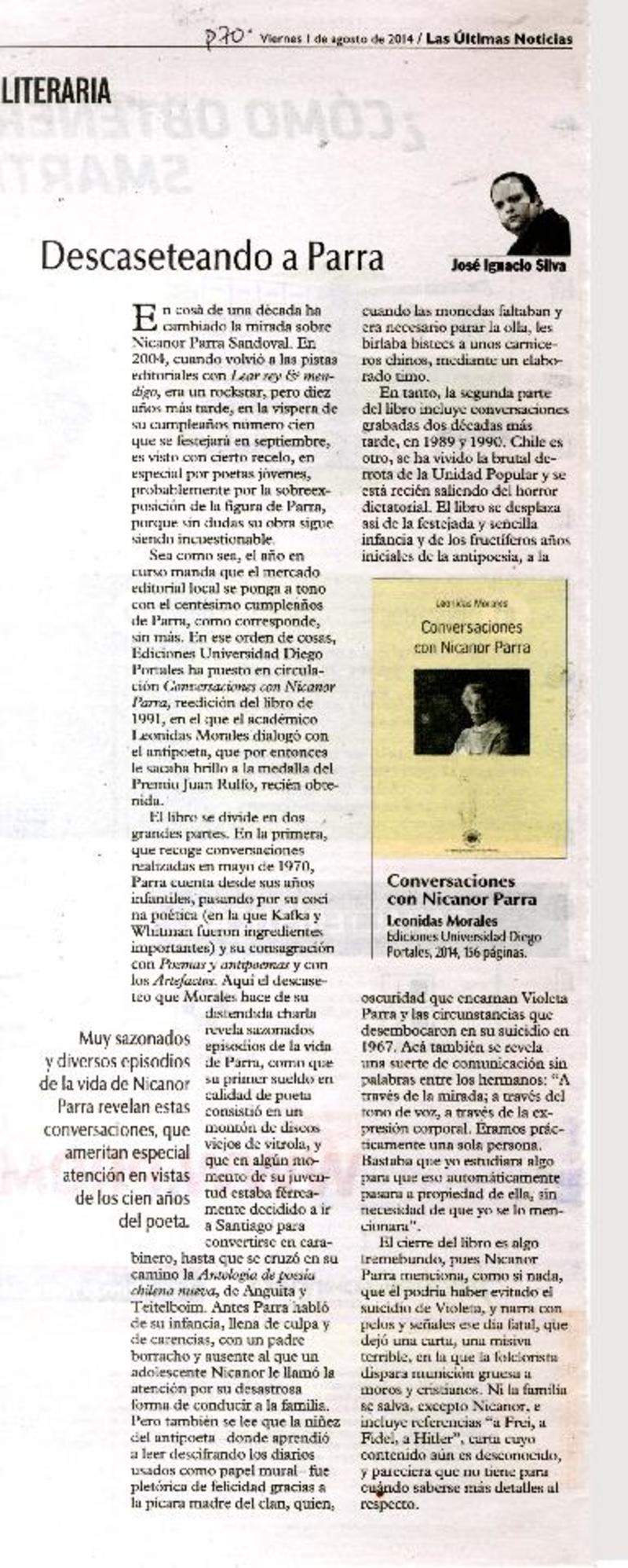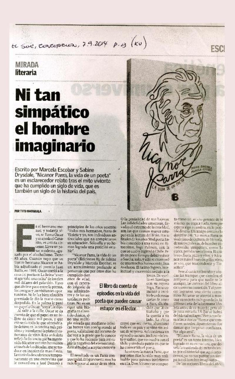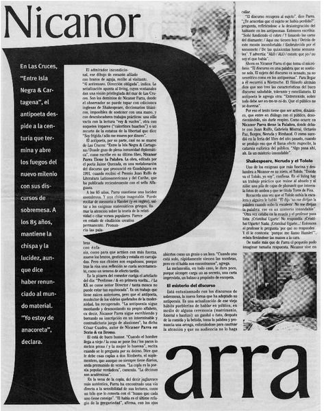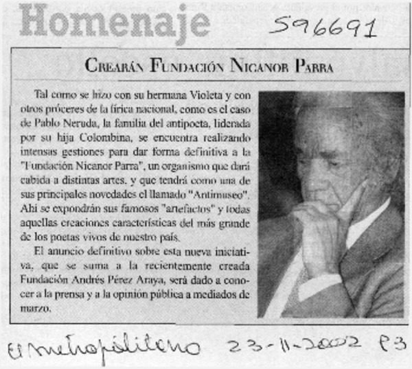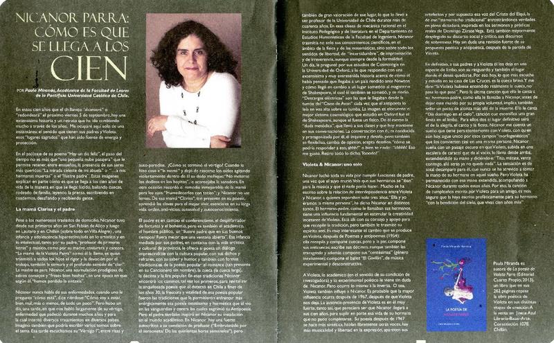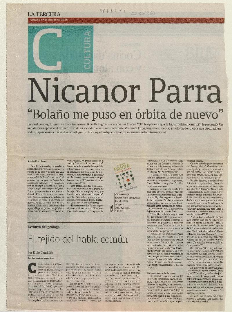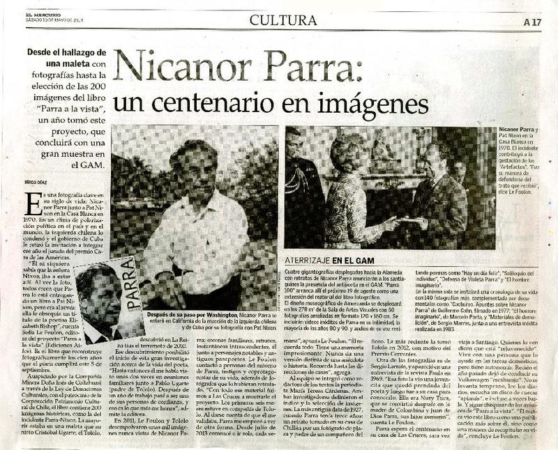 Amigo de Nicanor Parra relata sus lazos narrativos por 14 años [artículo] Catalina Garcés Rondanelli.