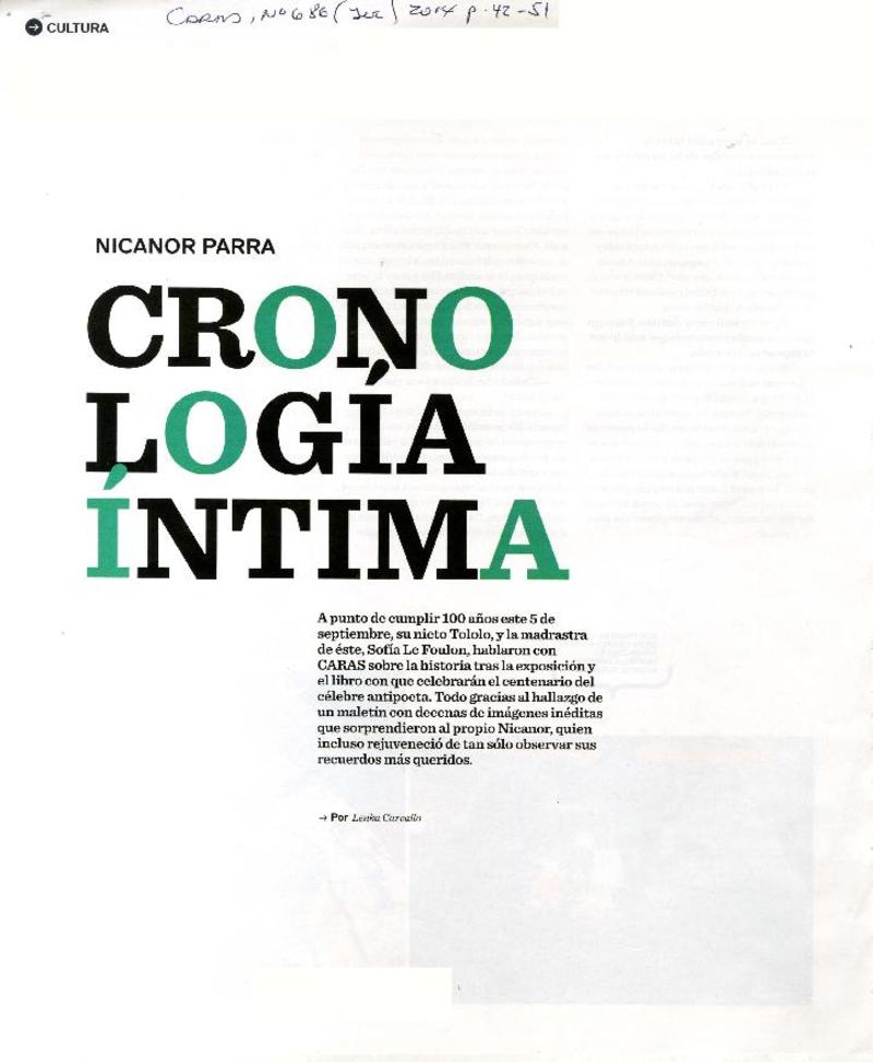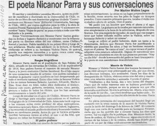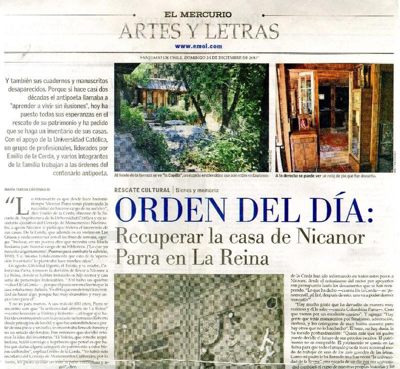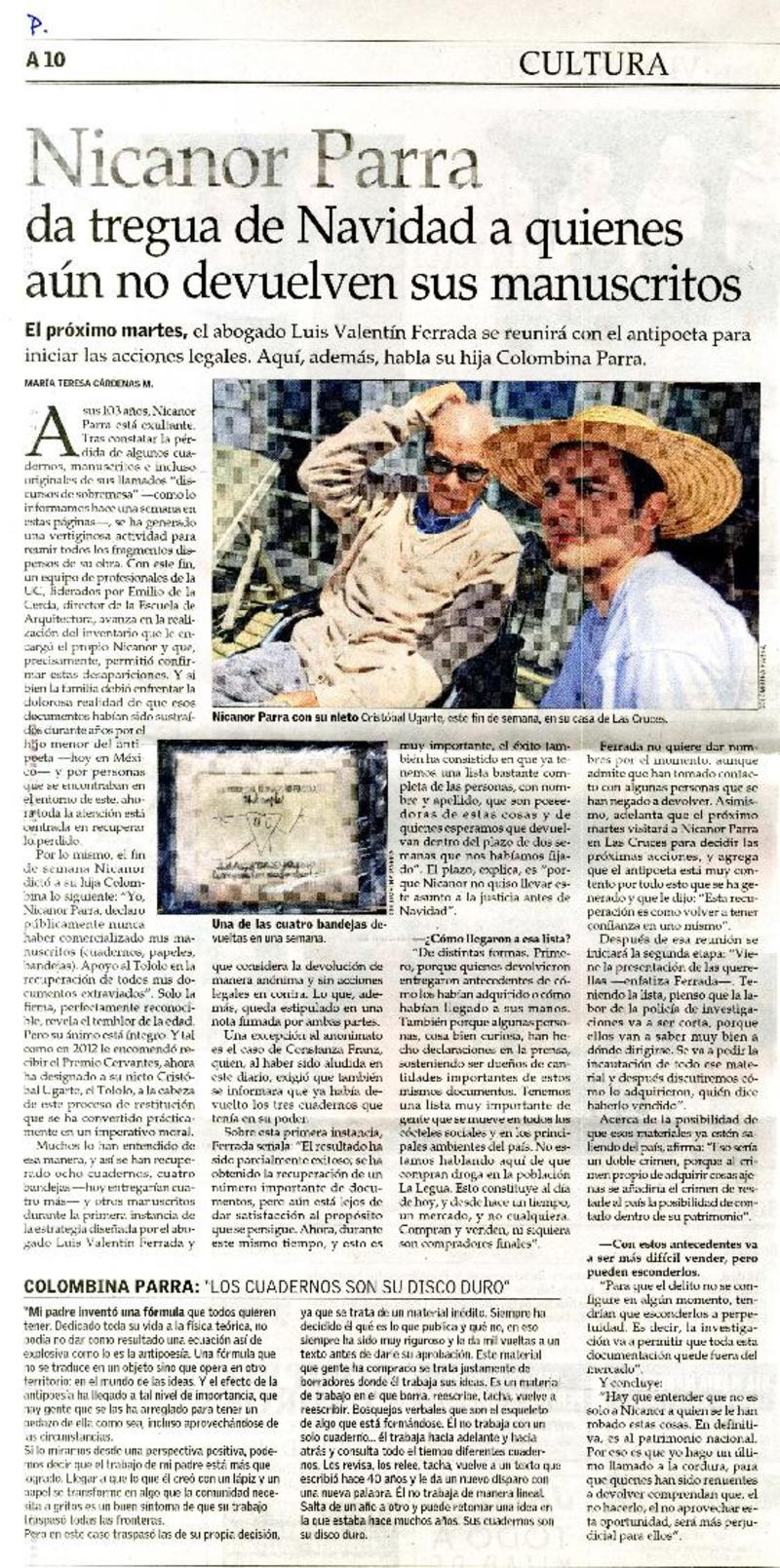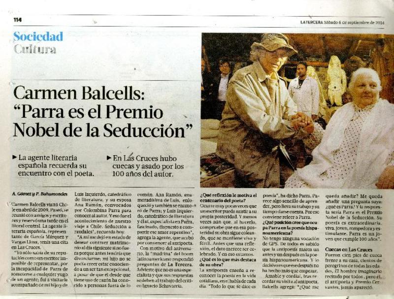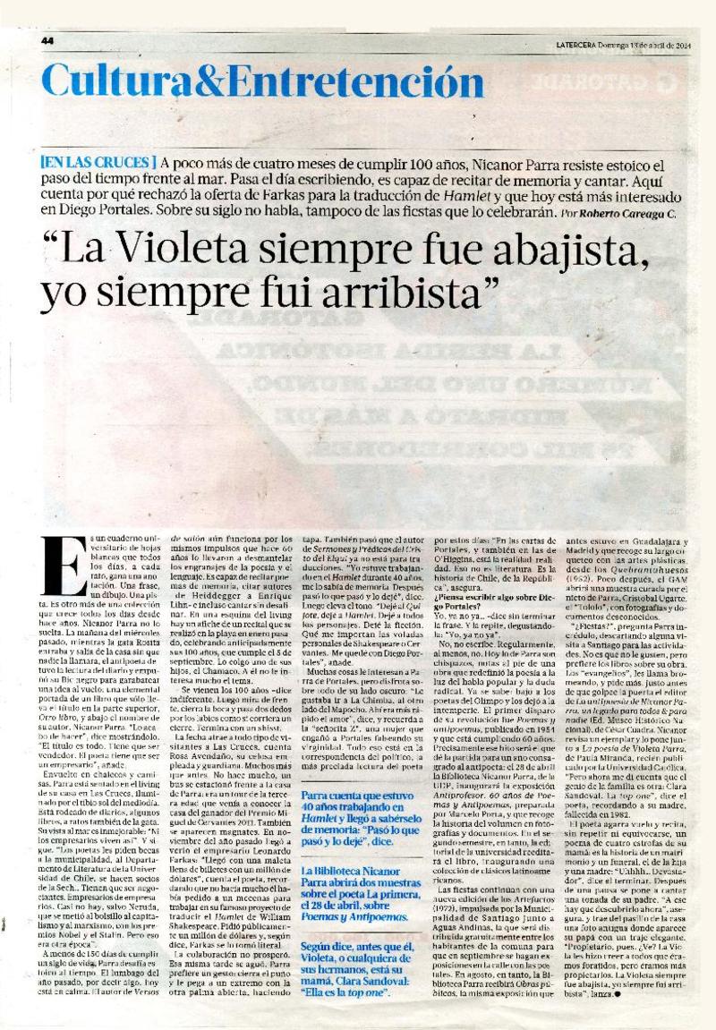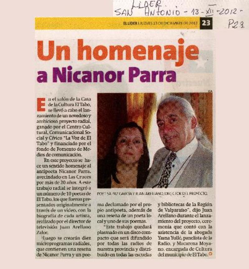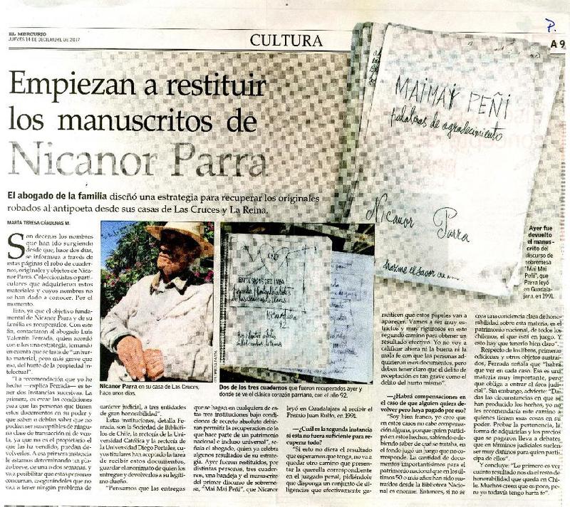 Amigo de Nicanor Parra relata sus lazos narrativos por 14 años [artículo] Catalina Garcés Rondanelli.