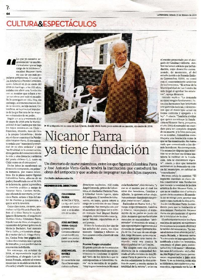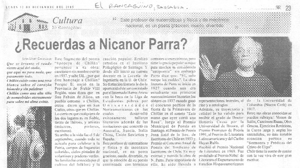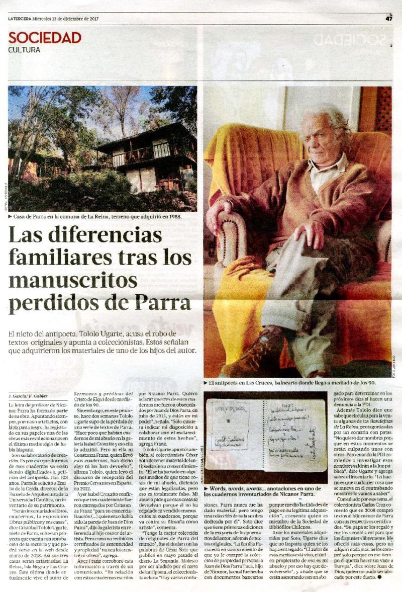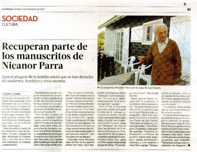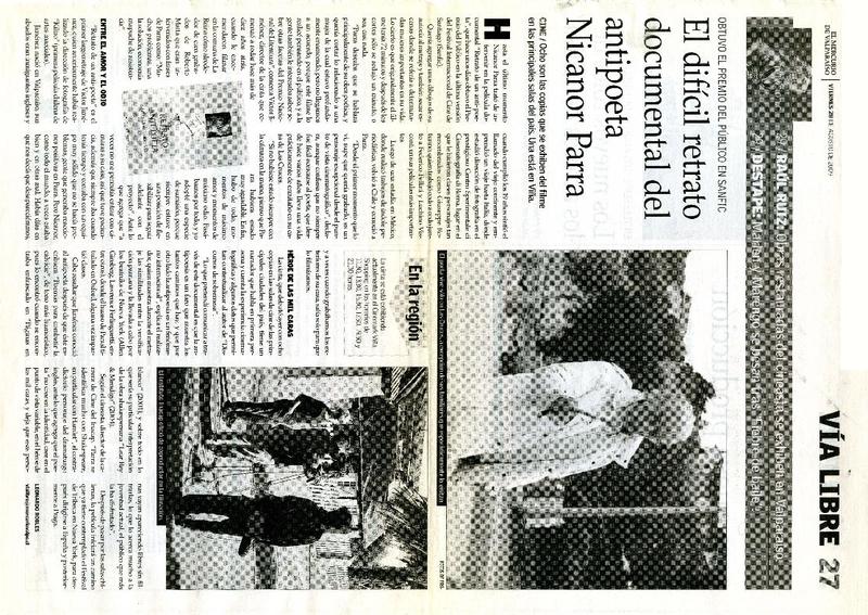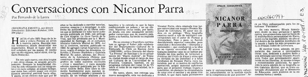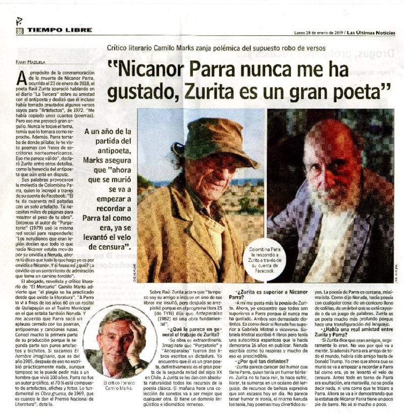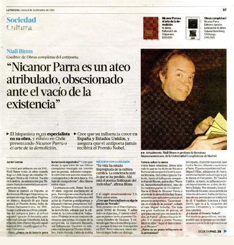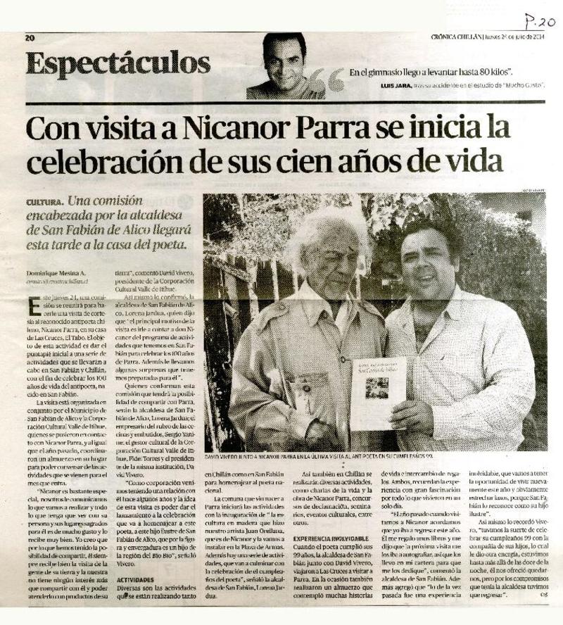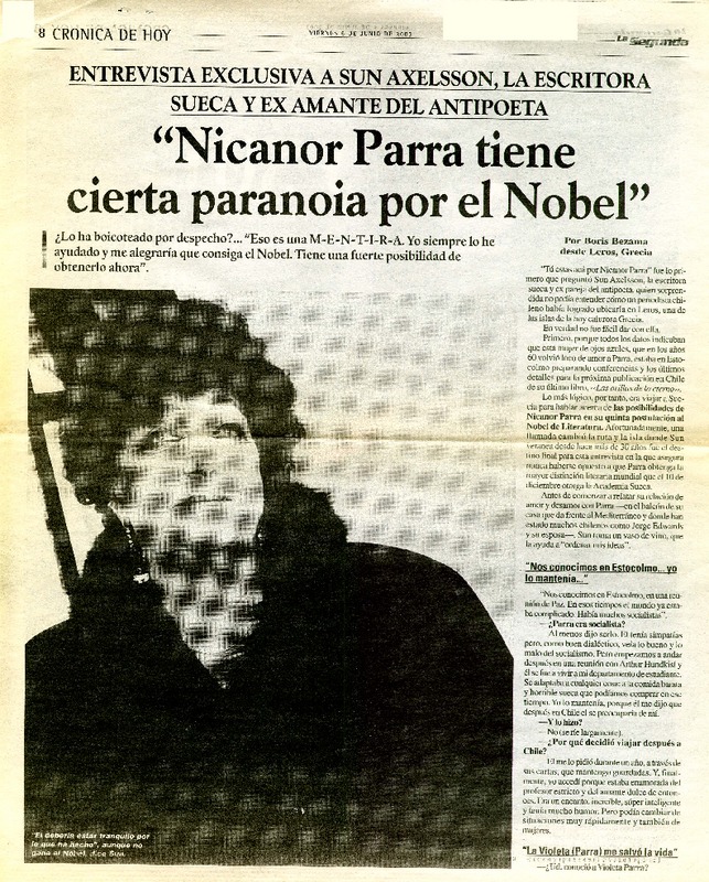 Amigo de Nicanor Parra relata sus lazos narrativos por 14 años [artículo] Catalina Garcés Rondanelli.