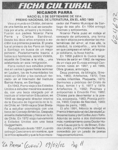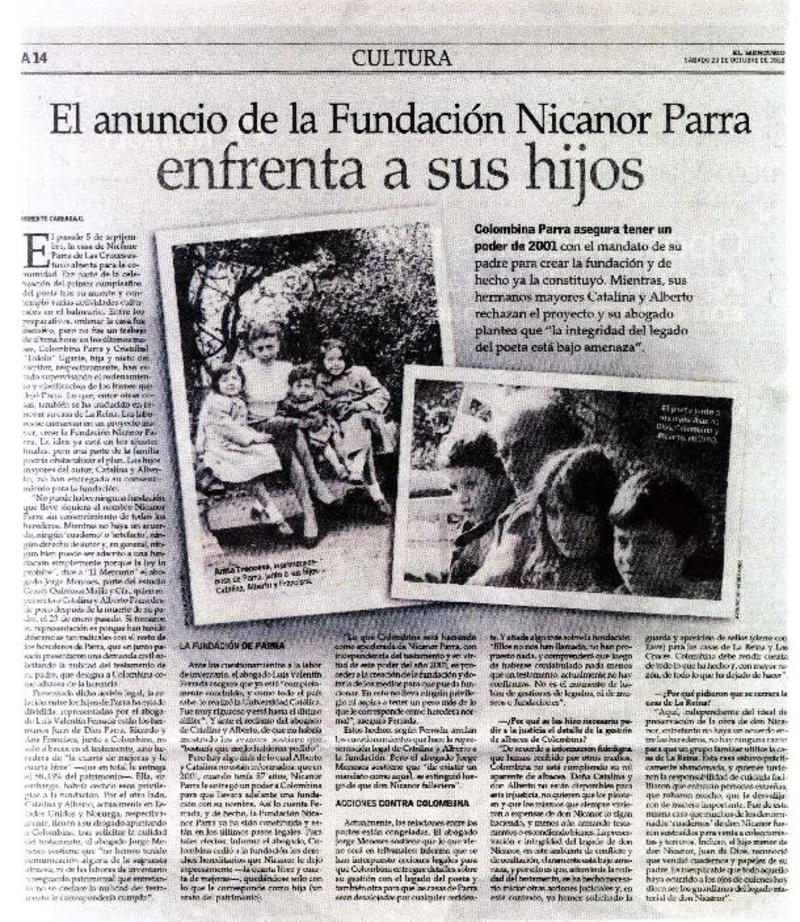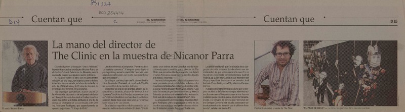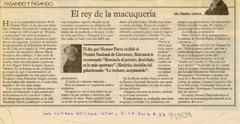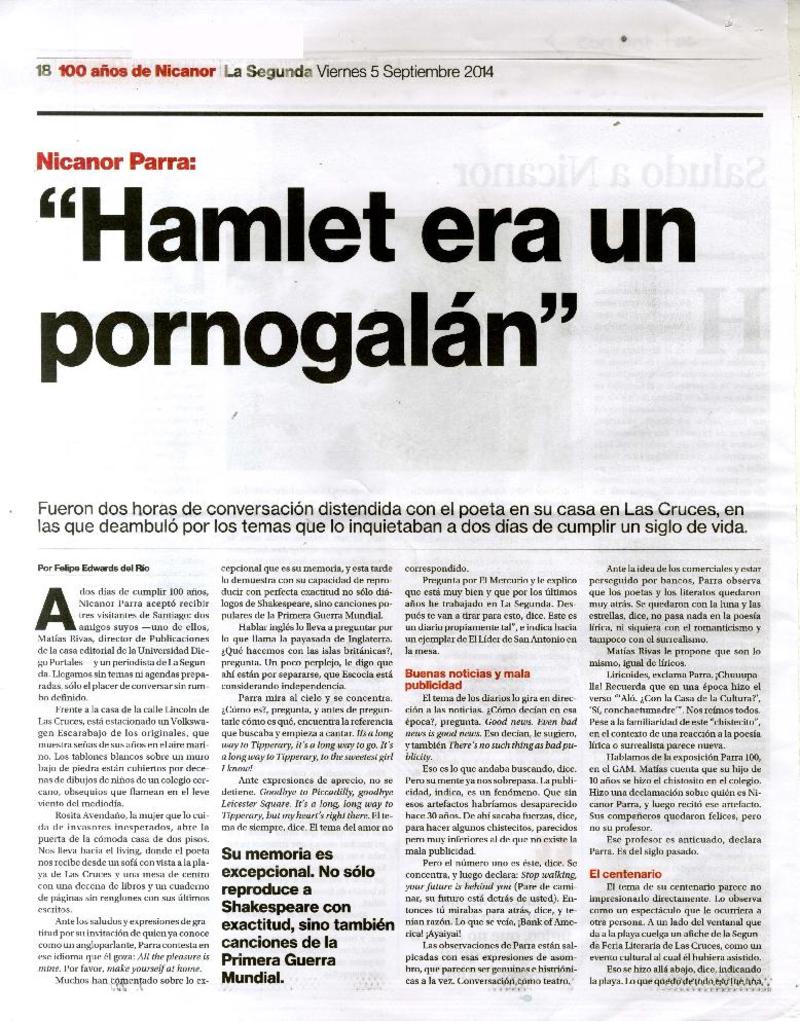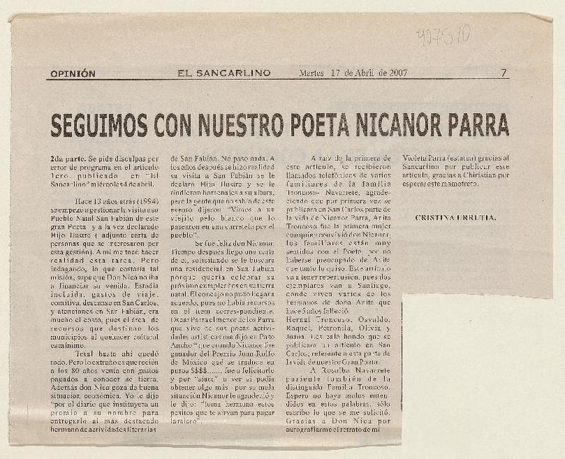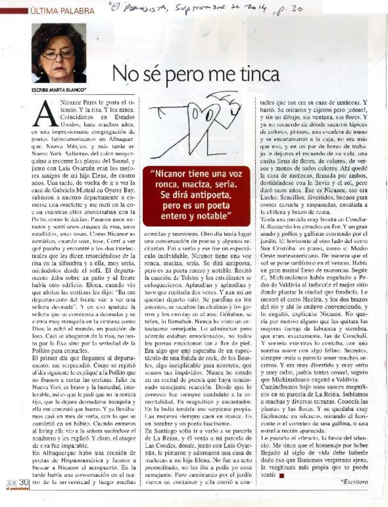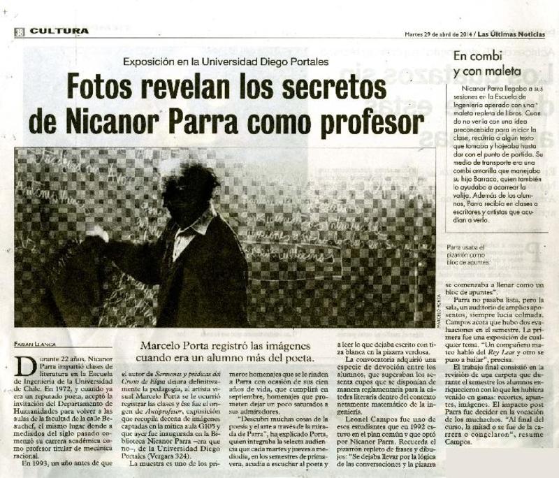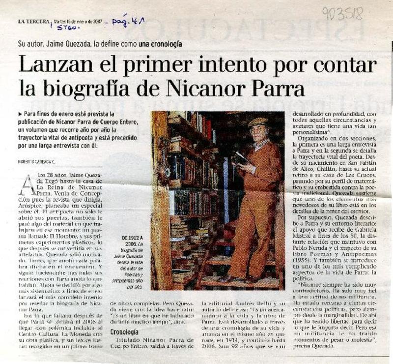 Amigo de Nicanor Parra relata sus lazos narrativos por 14 años [artículo] Catalina Garcés Rondanelli.
