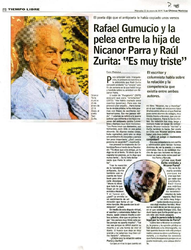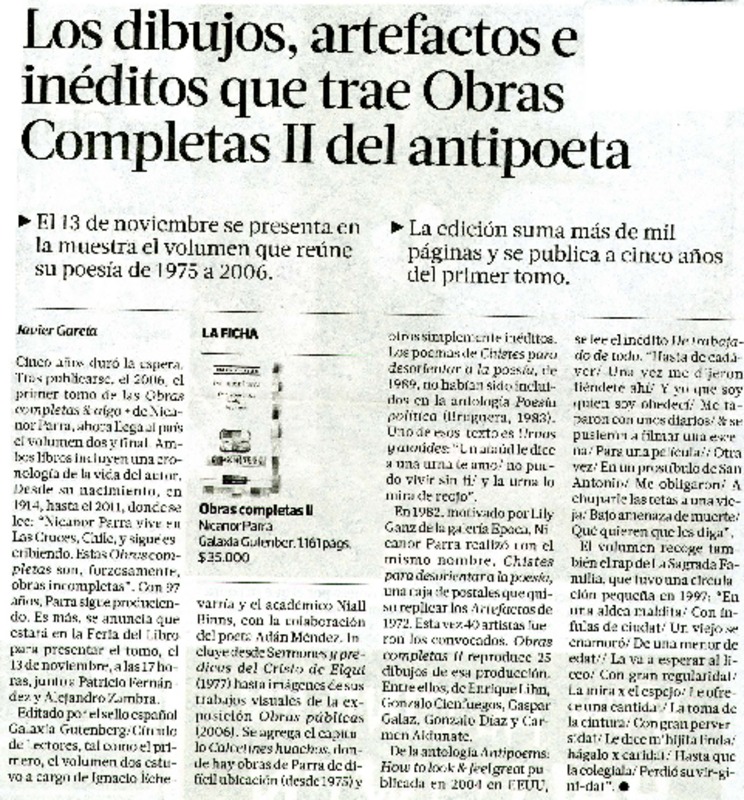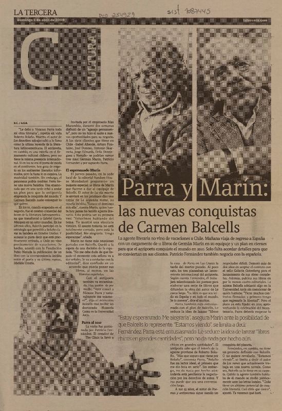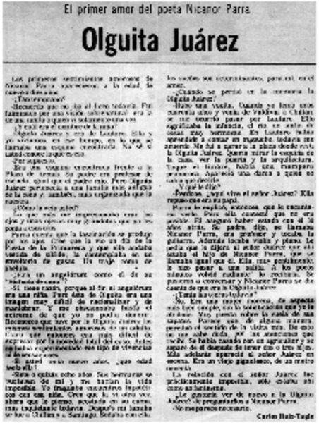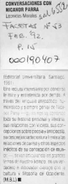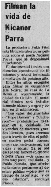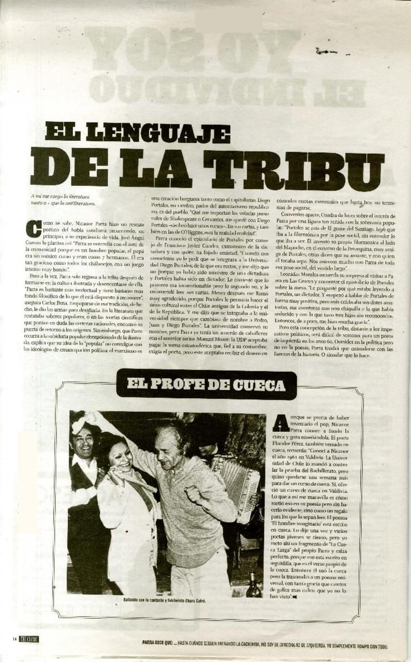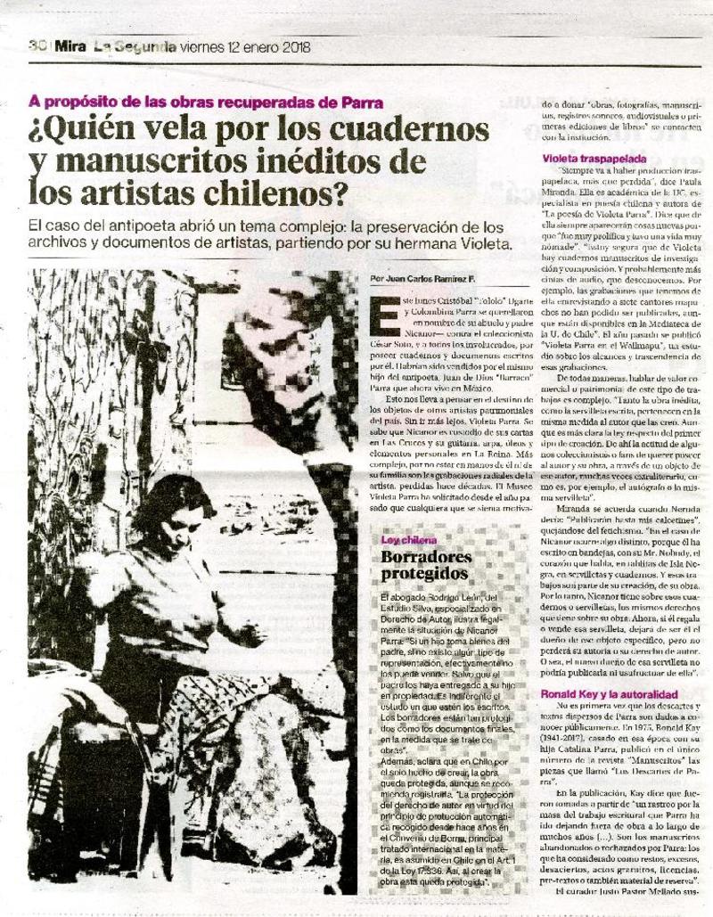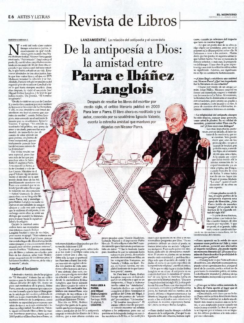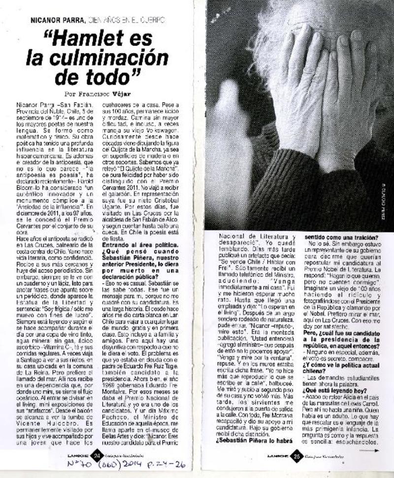 Amigo de Nicanor Parra relata sus lazos narrativos por 14 años [artículo] Catalina Garcés Rondanelli.